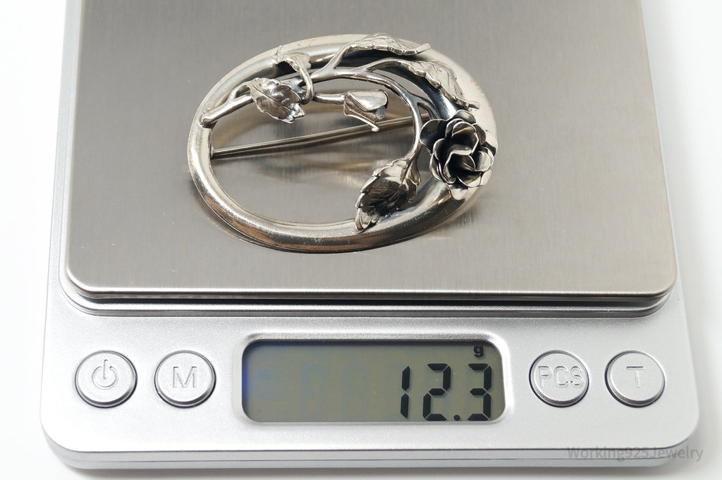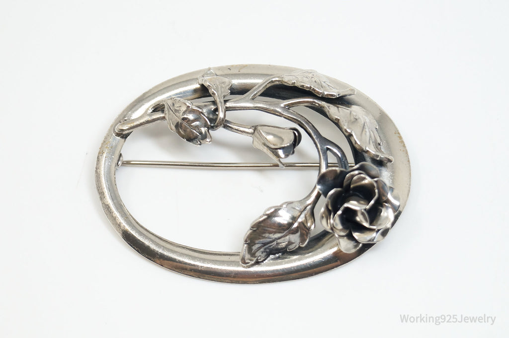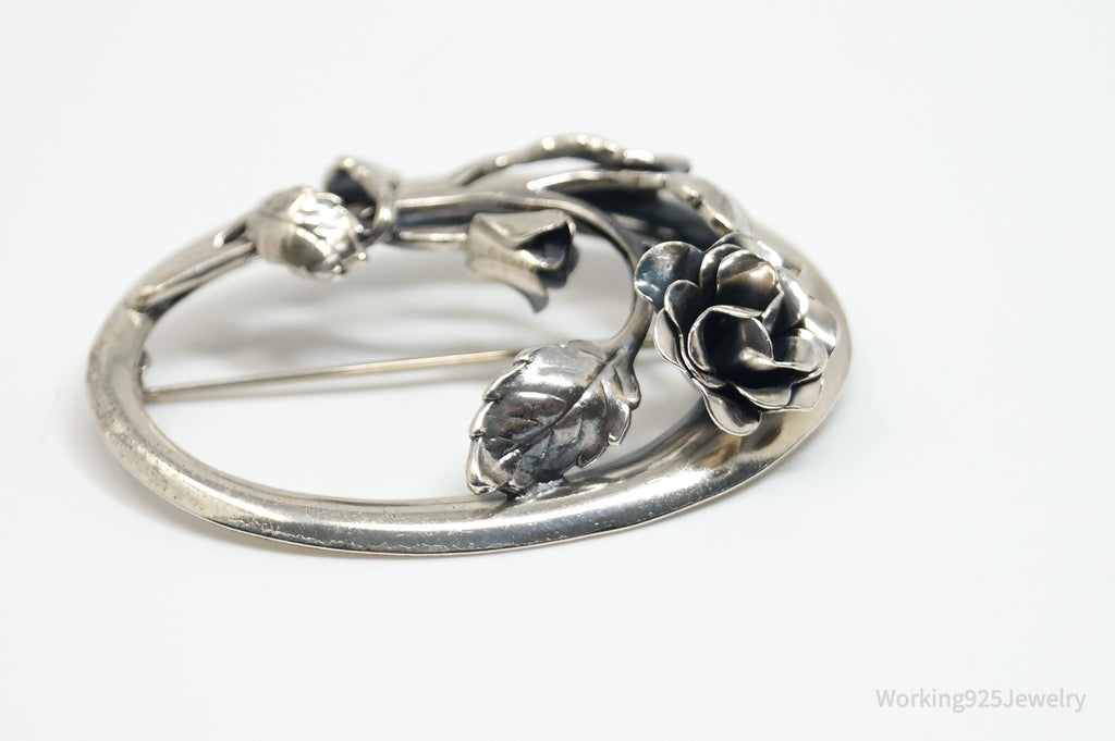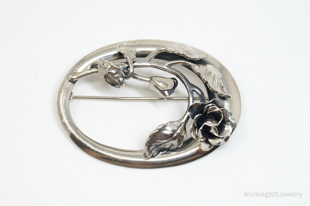 Vintage Designer Danecraft Large Sterling Silver Flower Motif Pin Brooch