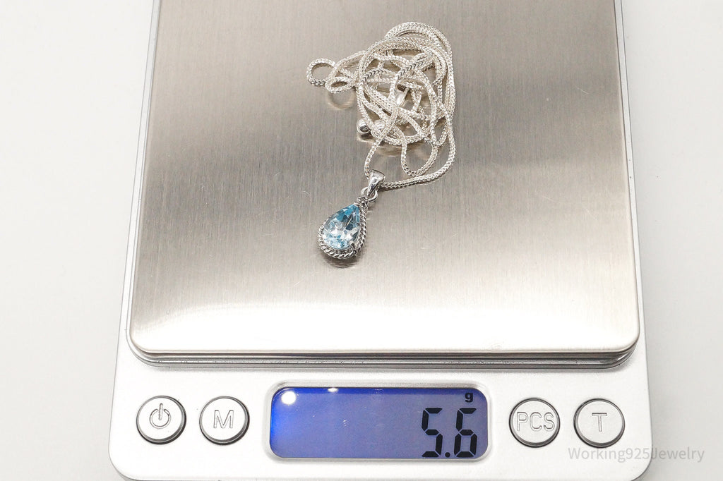 Vintage Designer DBJ Blue Topaz Diamond Sterling Silver Adjustable Necklace