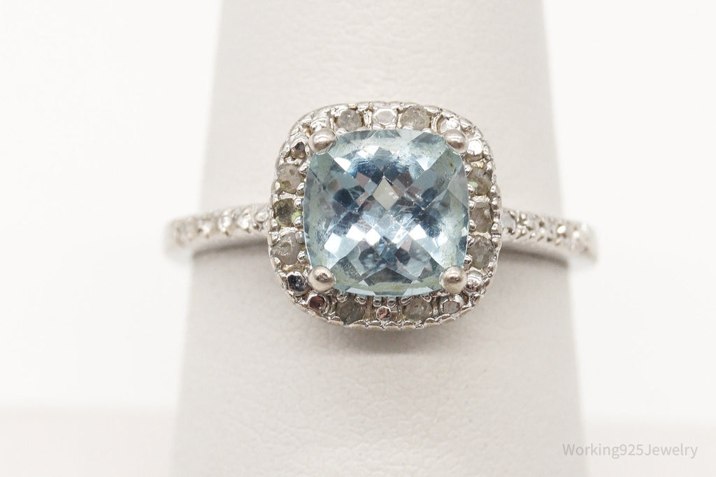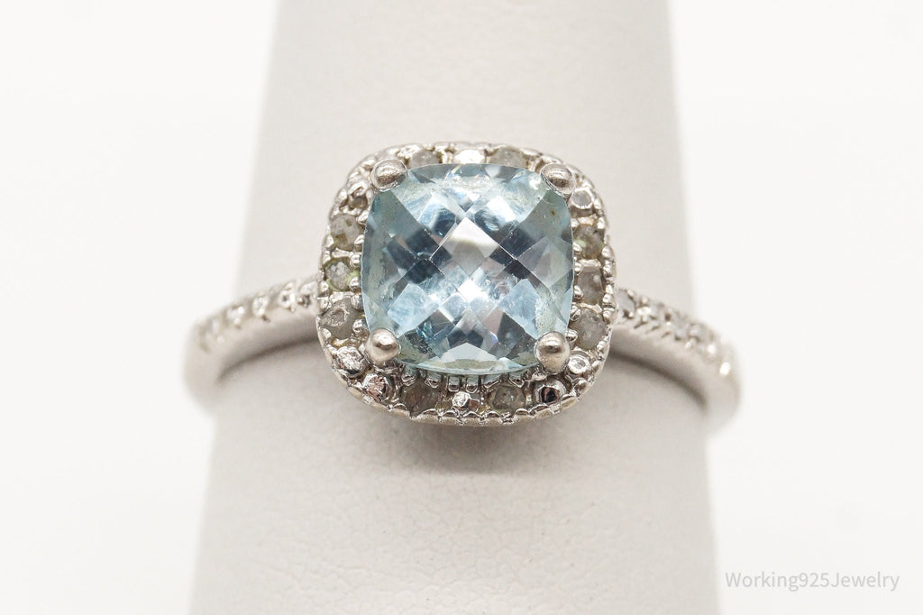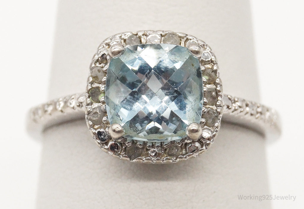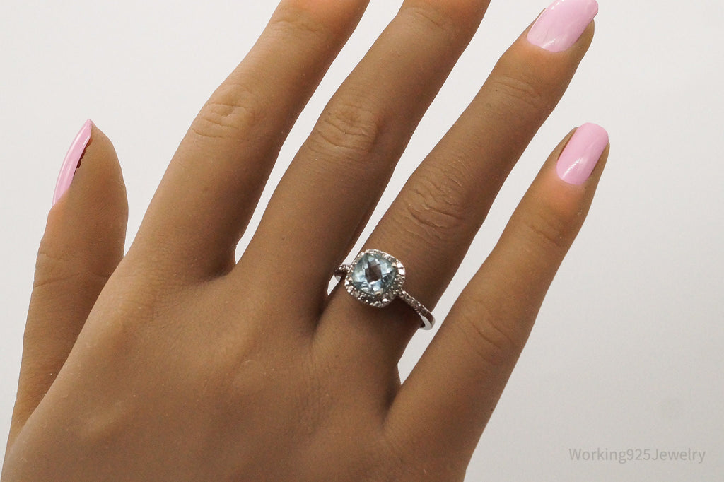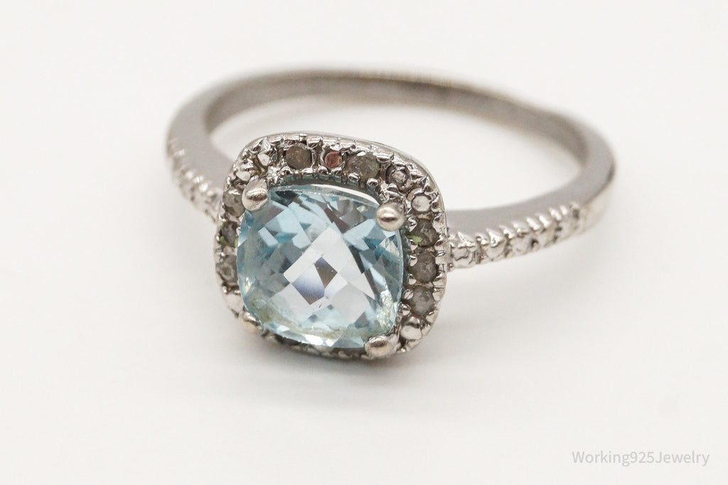 Vintage Designer DBJ Blue Topaz Diamond Sterling Silver Ring - Size 7