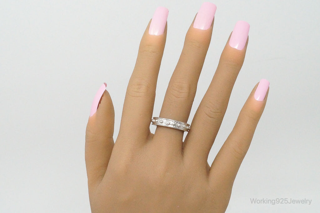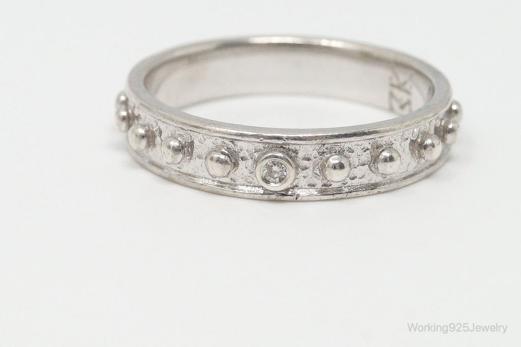 Vintage Designer Diamond Sterling Silver Ring - Size 10