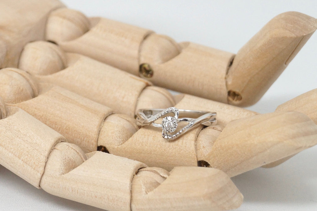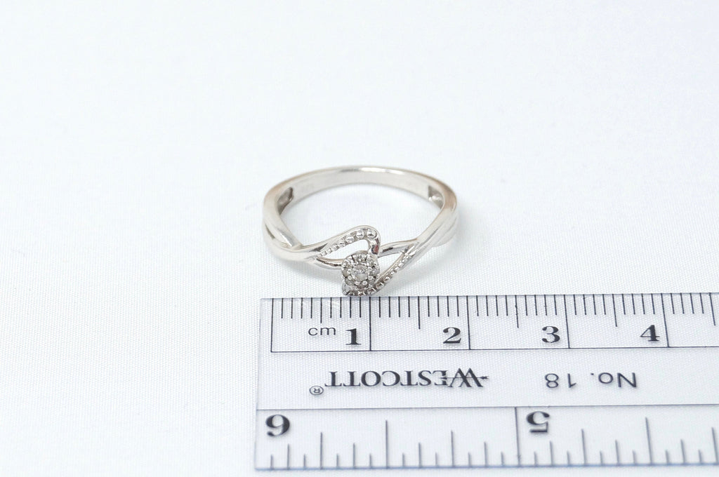 Vintage Designer Diamond Sweetheart Sterling Silver Ring - Size 7
