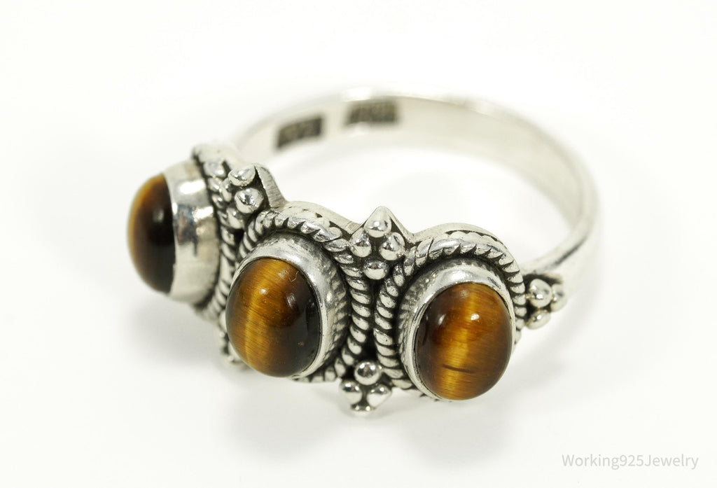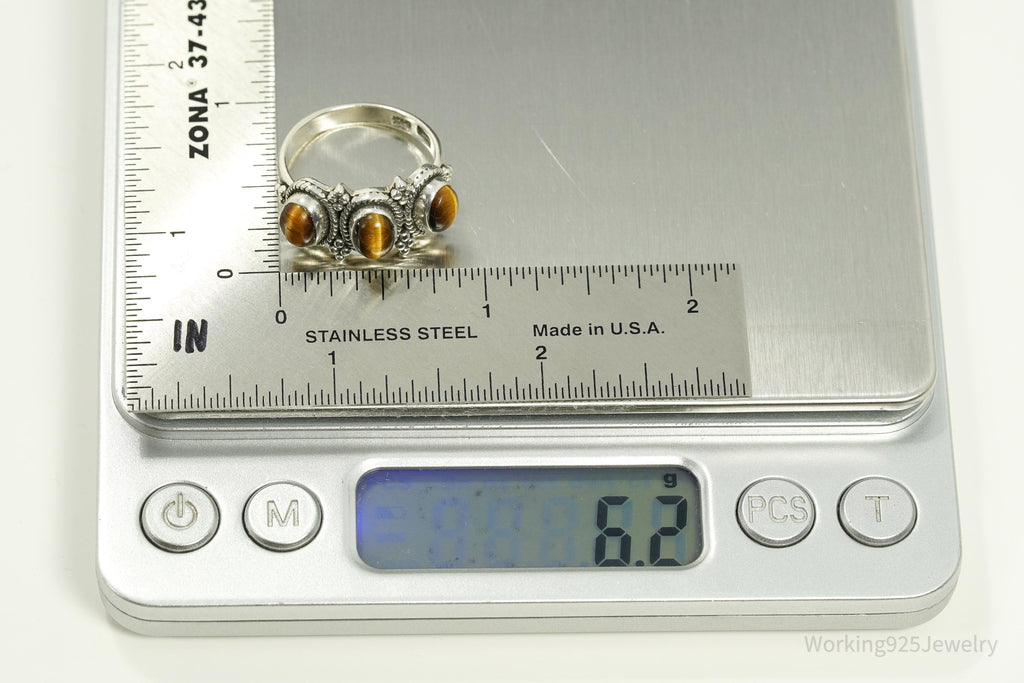 Vintage Designer Doug Paulus Tigers Eye Sterling Silver Ring - Size 8.25