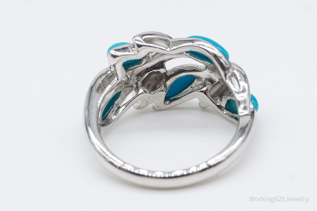Vintage Designer EA Turquoise Sterling Silver Ring - Size 5