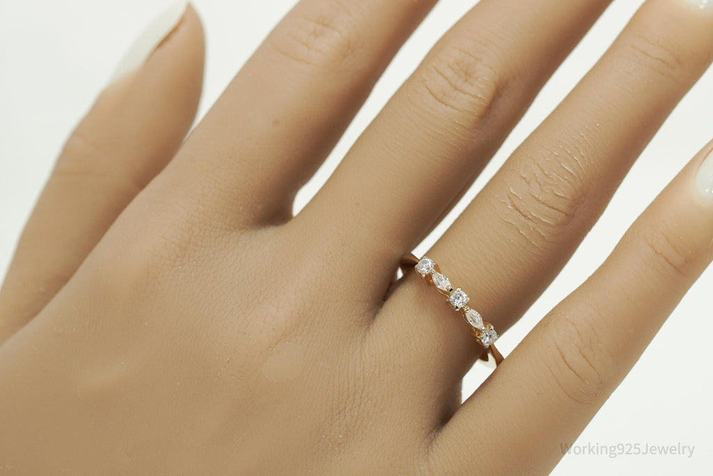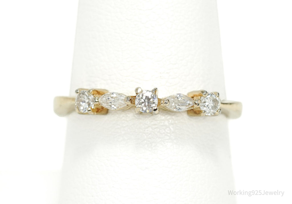 Vintage Designer FAS Cubic Zirconia Gold Vermeil Sterling Silver Ring - Size 8