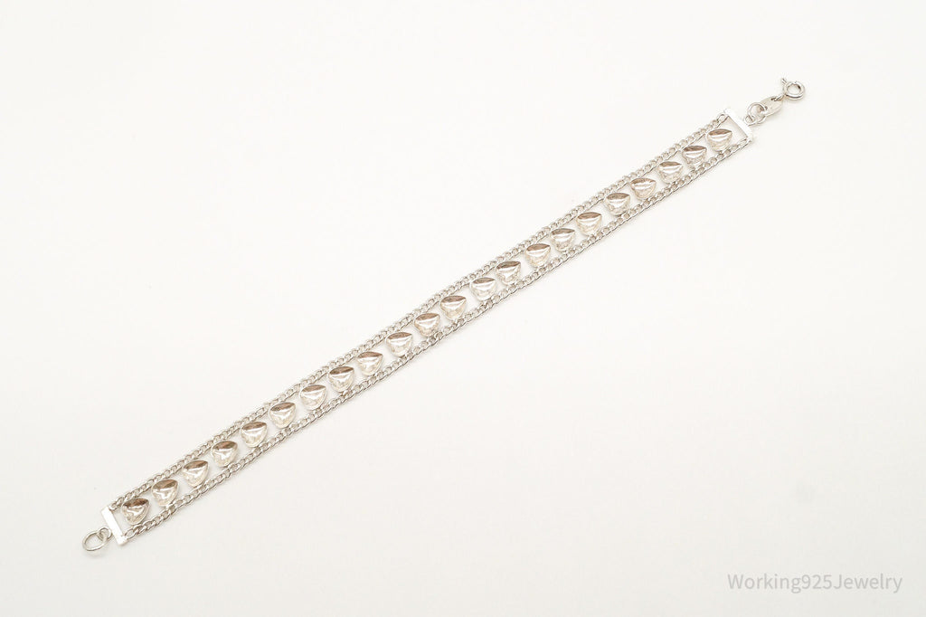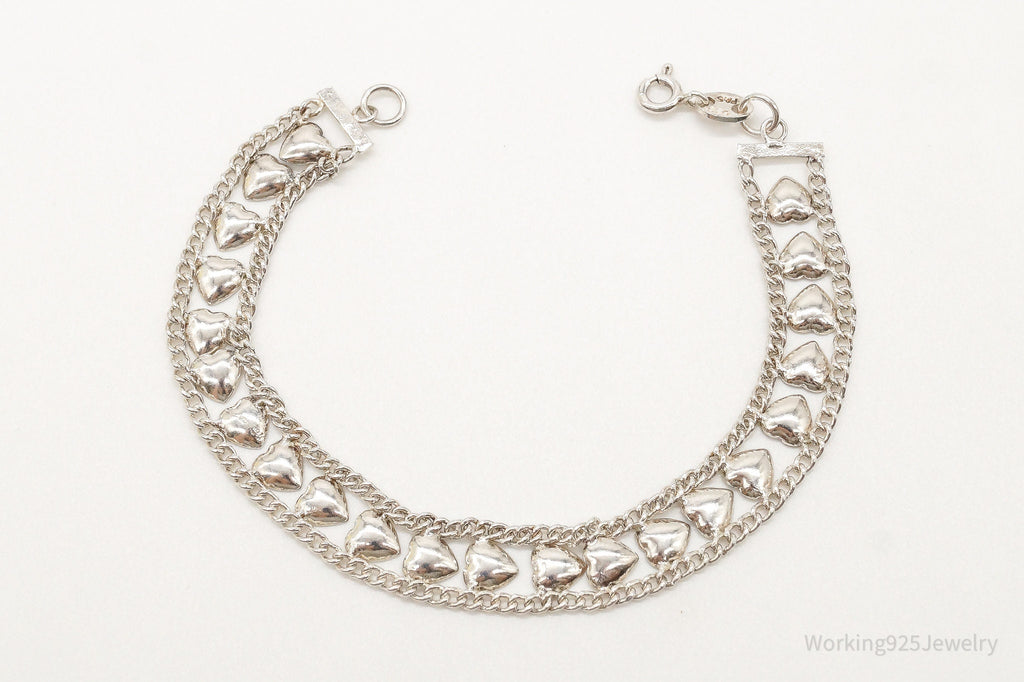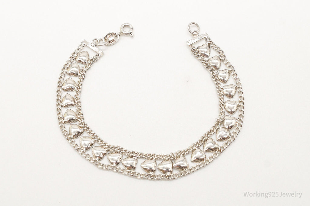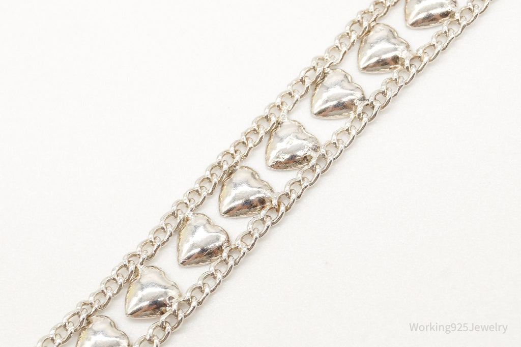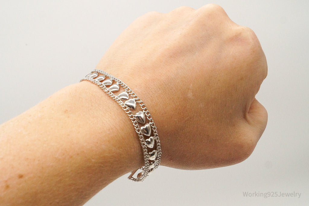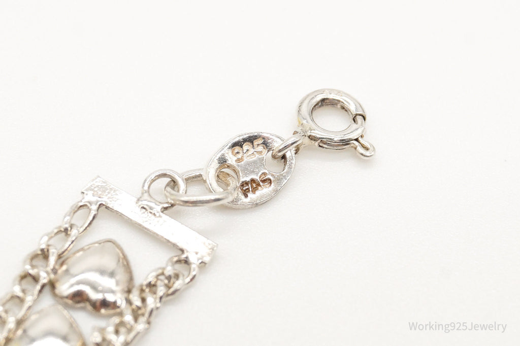 Vintage Designer FAS Hearts Chain Link Sterling Silver Bracelet