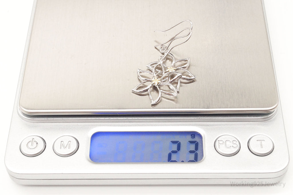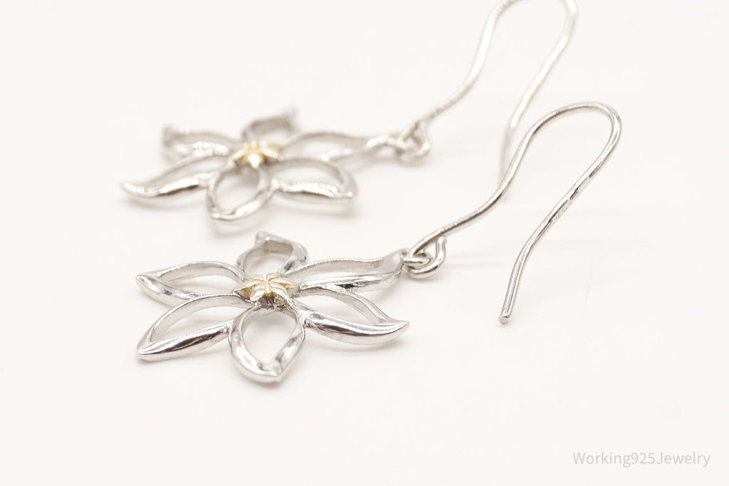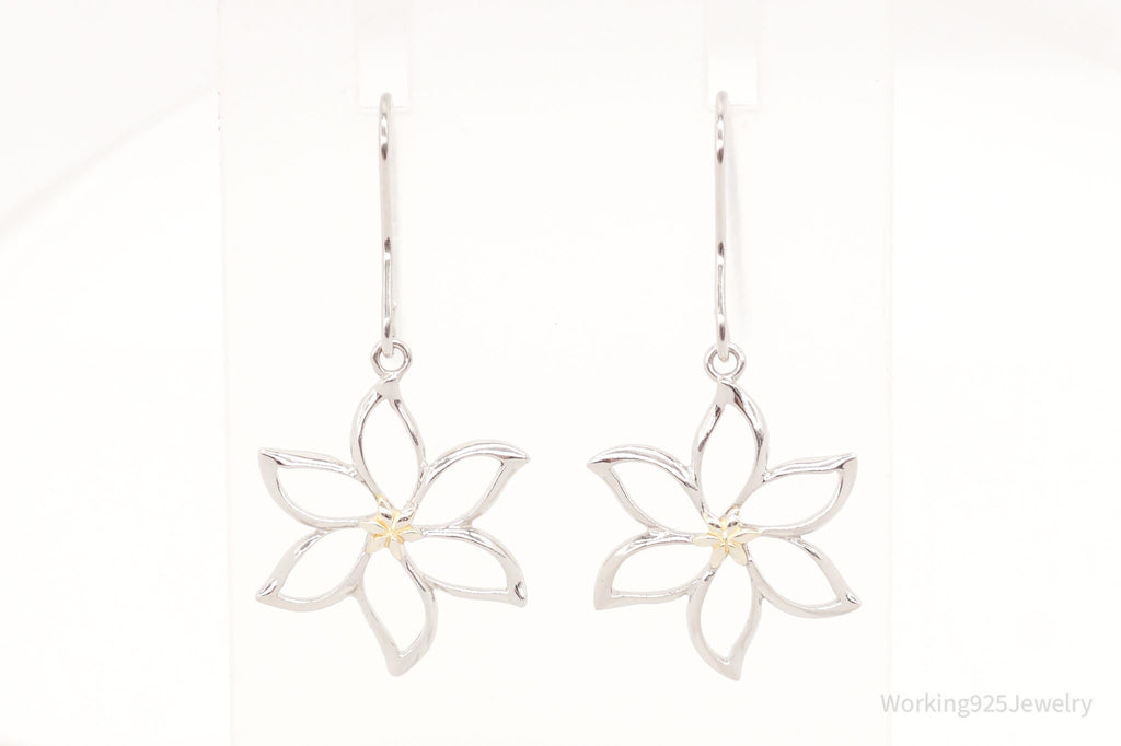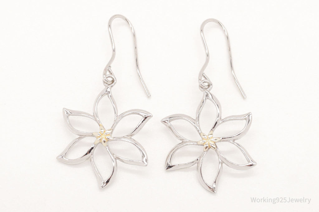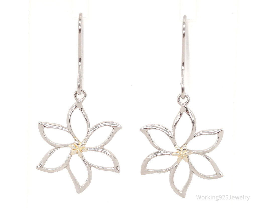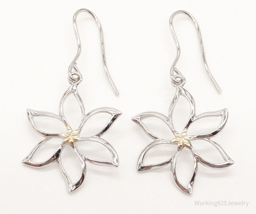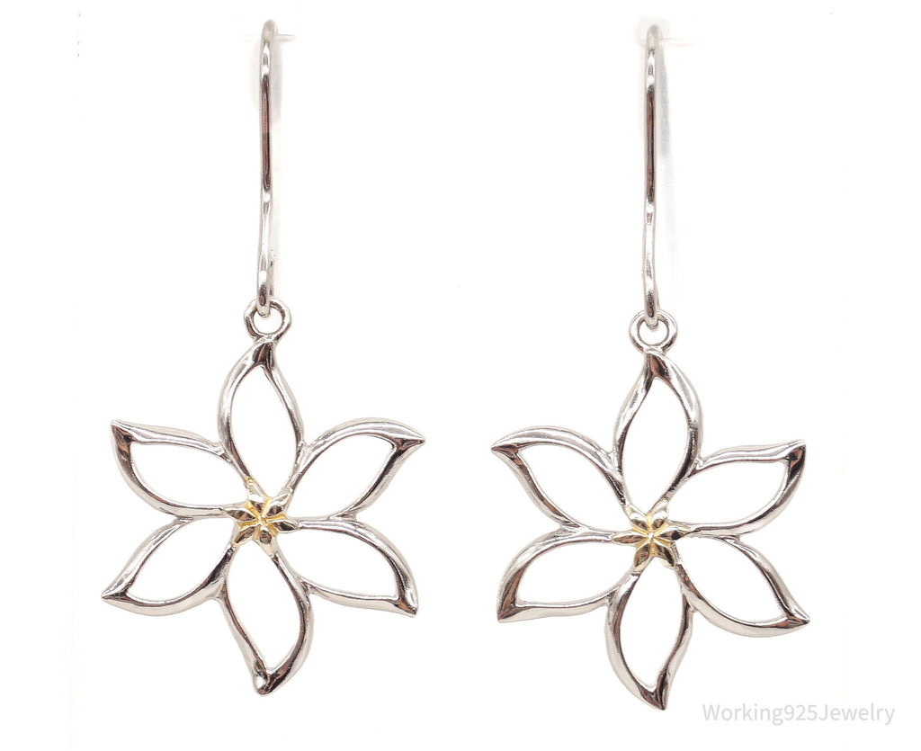 Vintage Designer FAS Large Flowers Gold Vermeil Sterling Silver Earrings