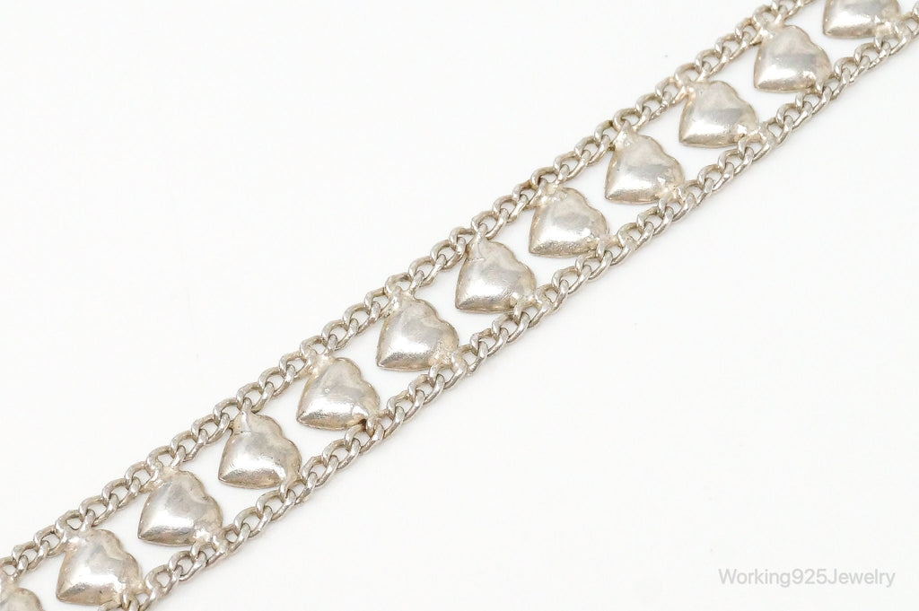 Vintage Designer FAS Linked Hearts Sterling Silver Bracelet