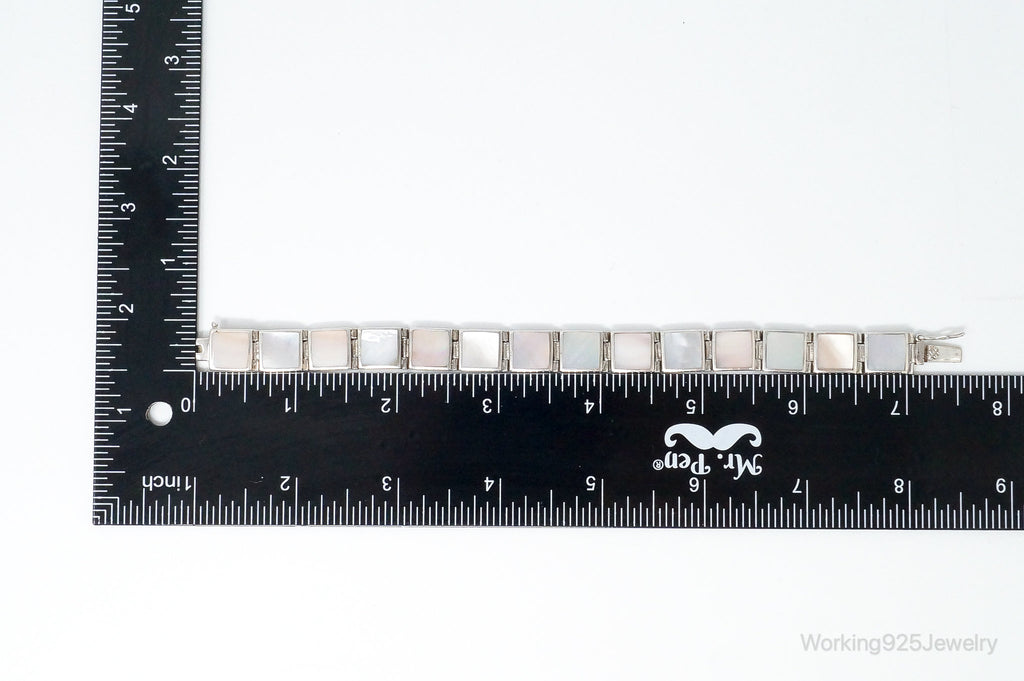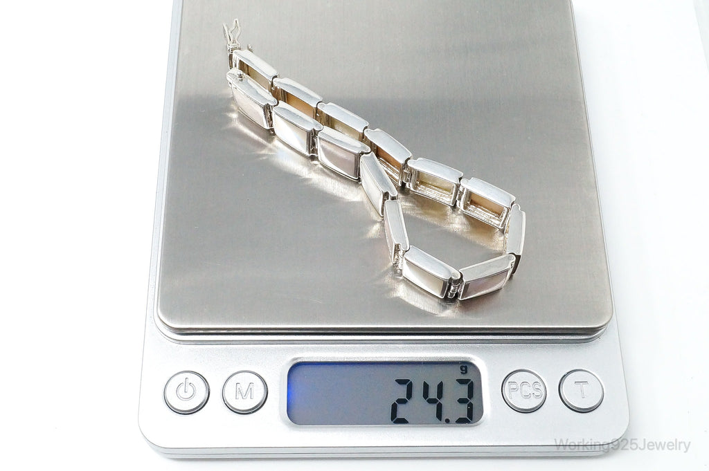 Vintage Designer FAS Mother Of Pearl Sterling Silver Panel Bracelet