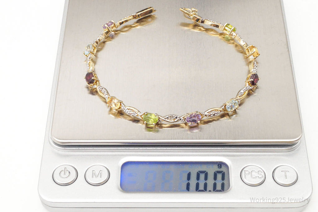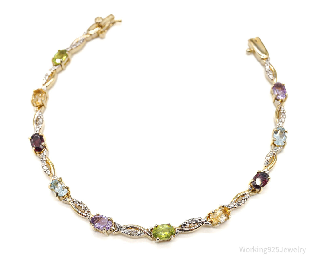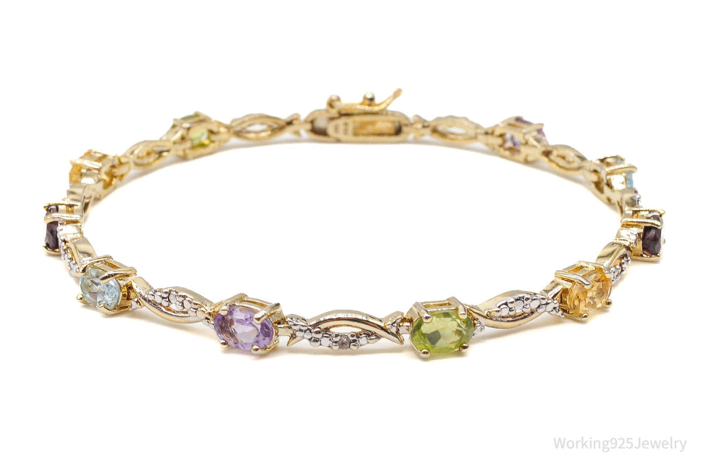 Vintage Designer FAS Multi Gem 1 Diamond Gold Vermeil Sterling Silver Bracelet
