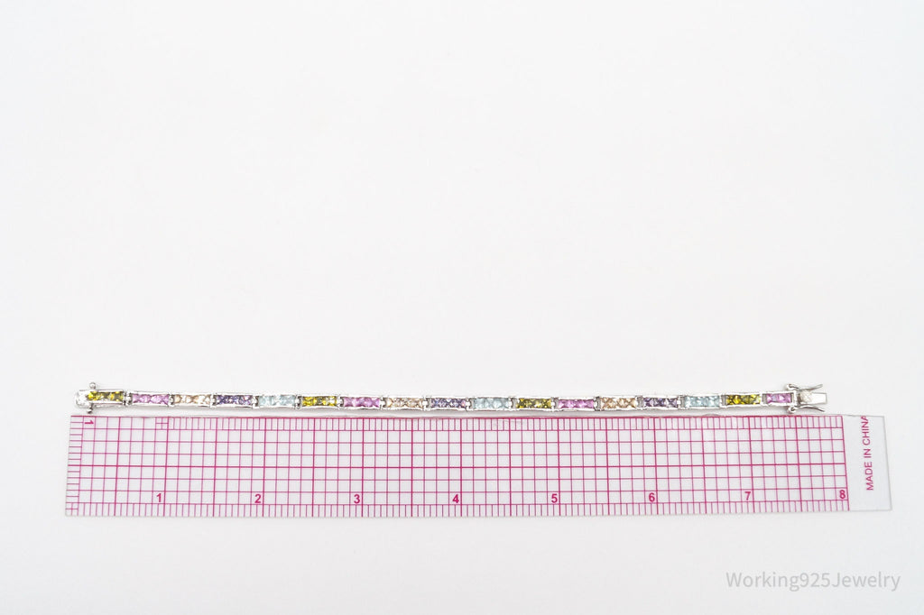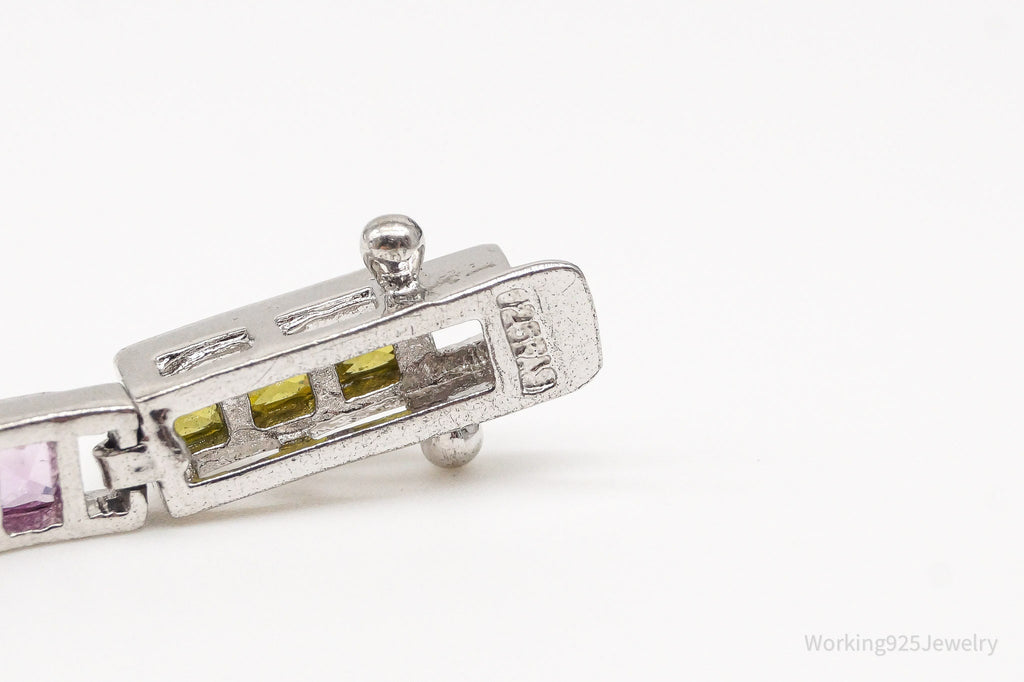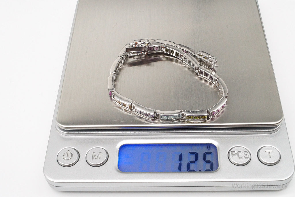 Vintage Designer FAS Multi Gemstone Sterling Silver Plated Bracelet