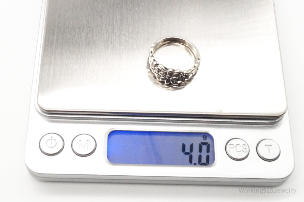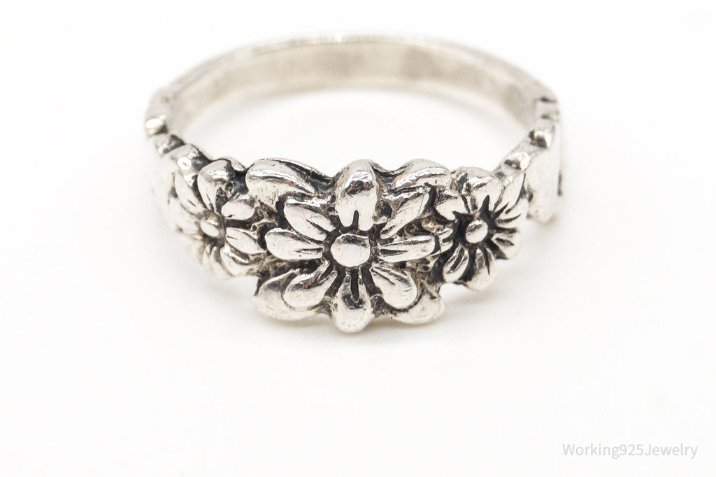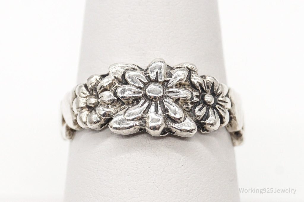 Vintage Designer Flowers Sterling Silver Ring - Size 7.75