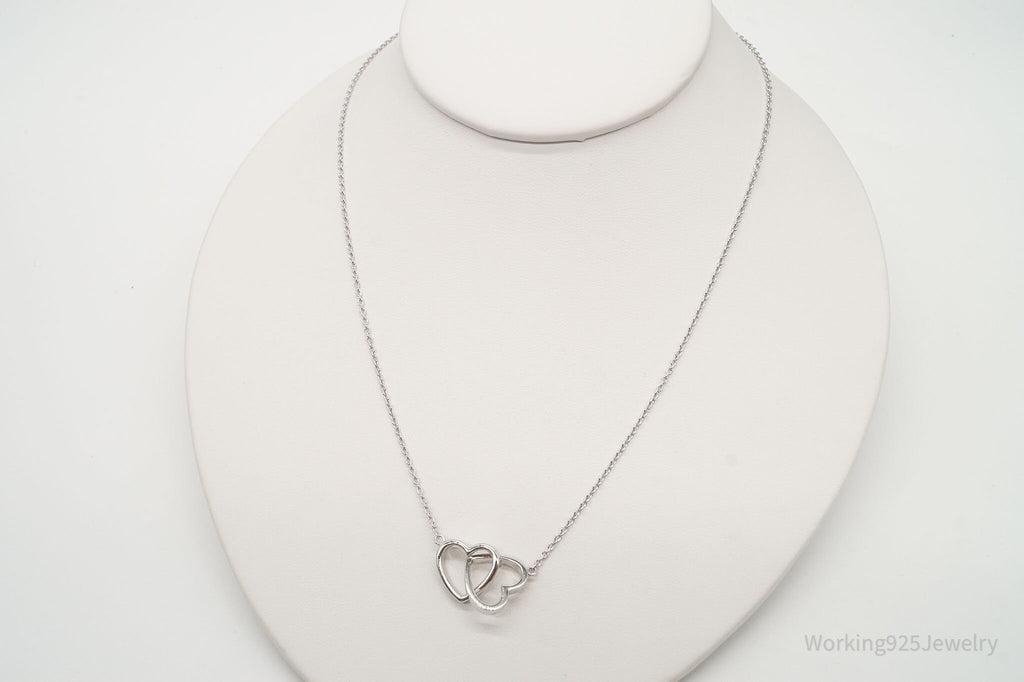 Vintage Designer FZN Linked Hearts Sterling Silver Necklace