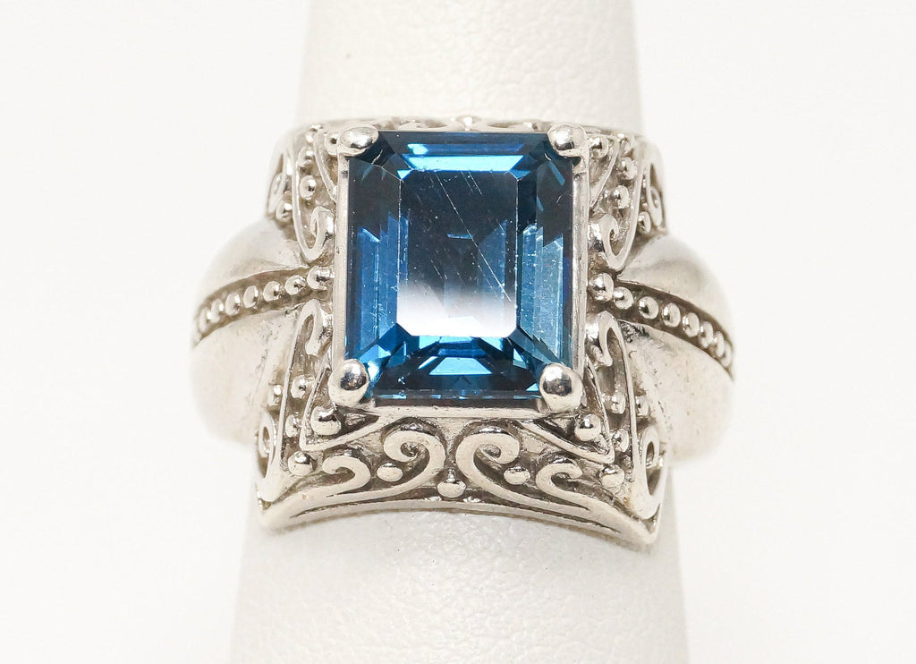 Vintage Designer ISG Large Blue Topaz Sterling Silver Ring - Sz 6.5