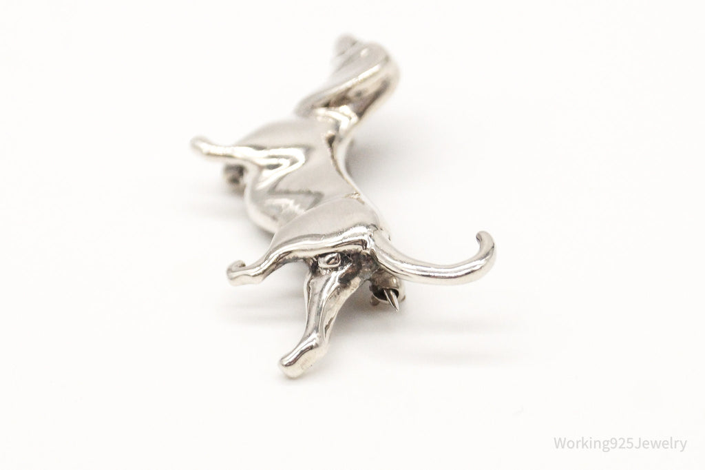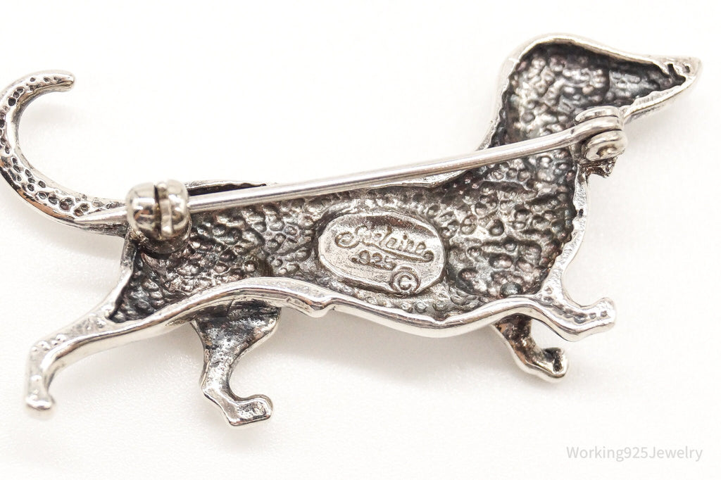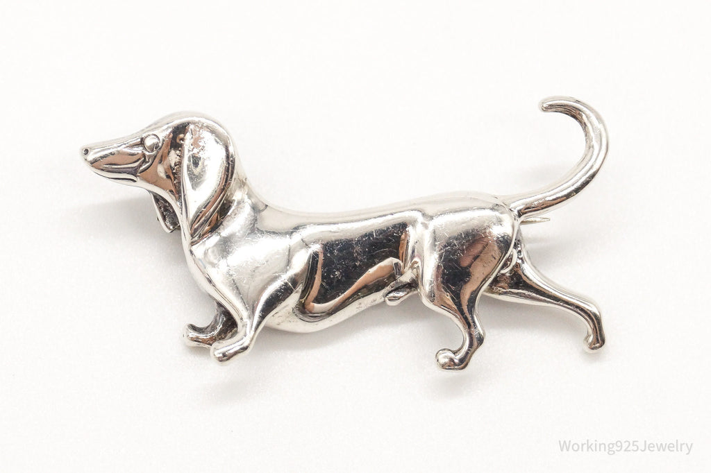 Vintage Designer Jerlaine Dachshund Weiner Dog Sterling Silver Brooch Pin
