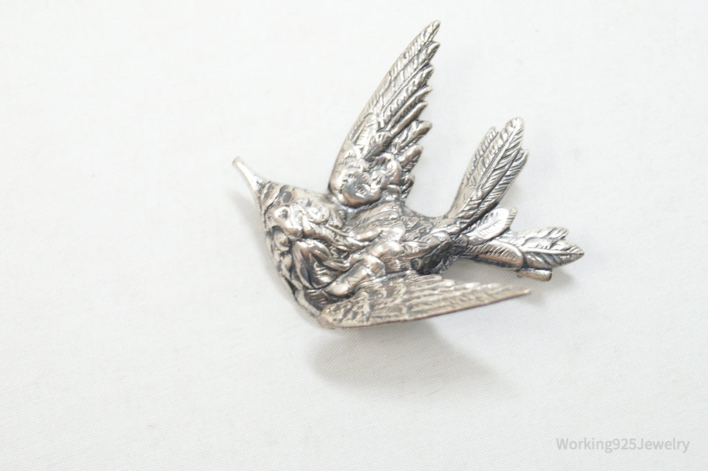 Vintage Designer JewelArt Humming Bird Sterling Silver Brooch Pin