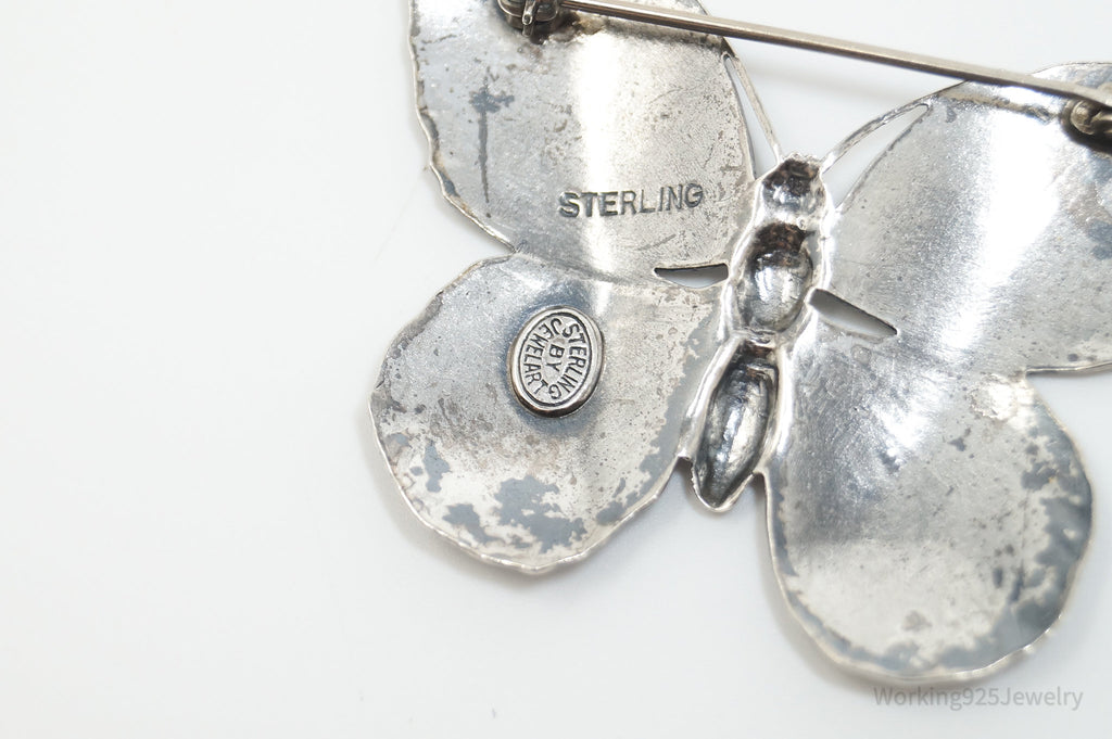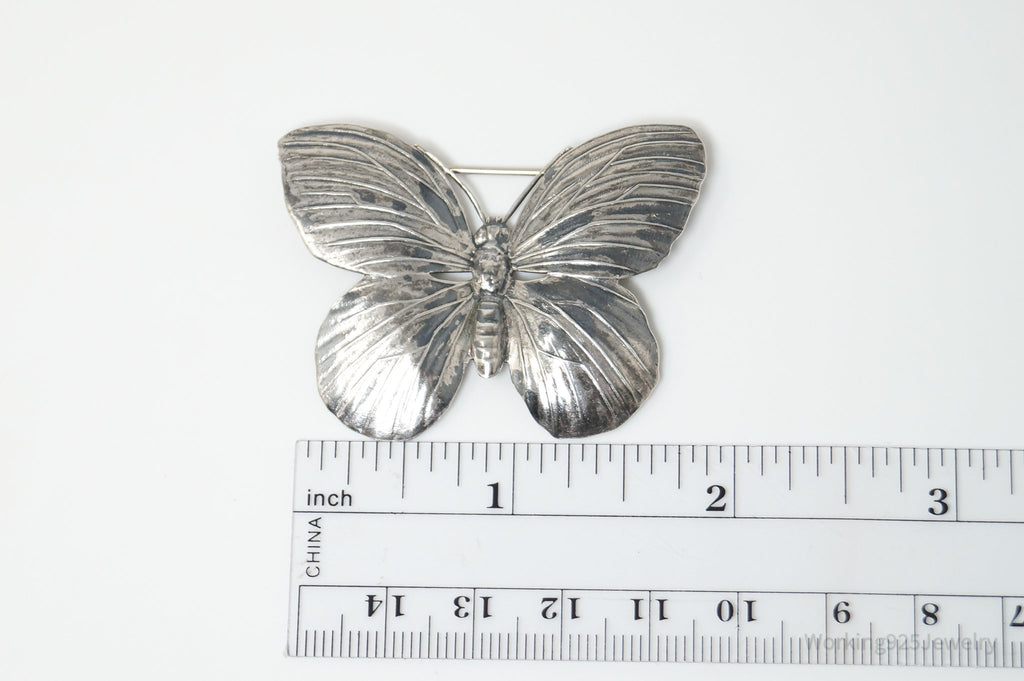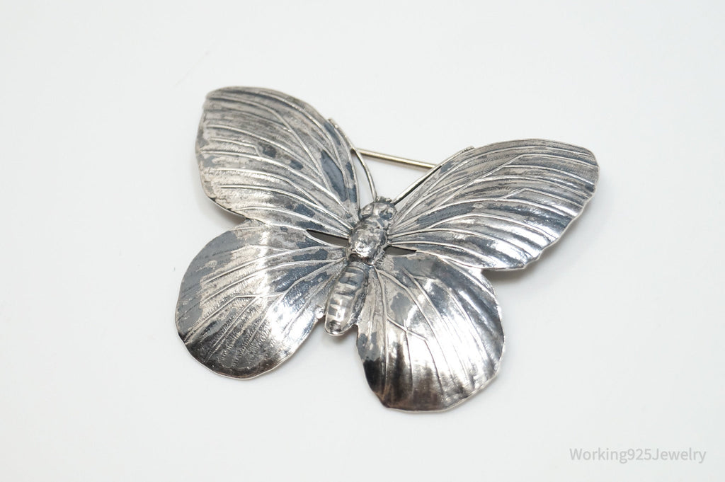 Vintage Designer JewelArt Large Butterfly Sterling Silver Brooch Pin