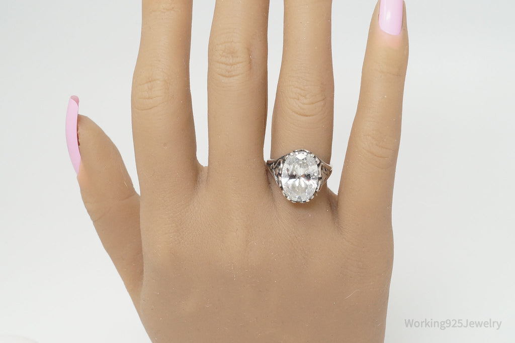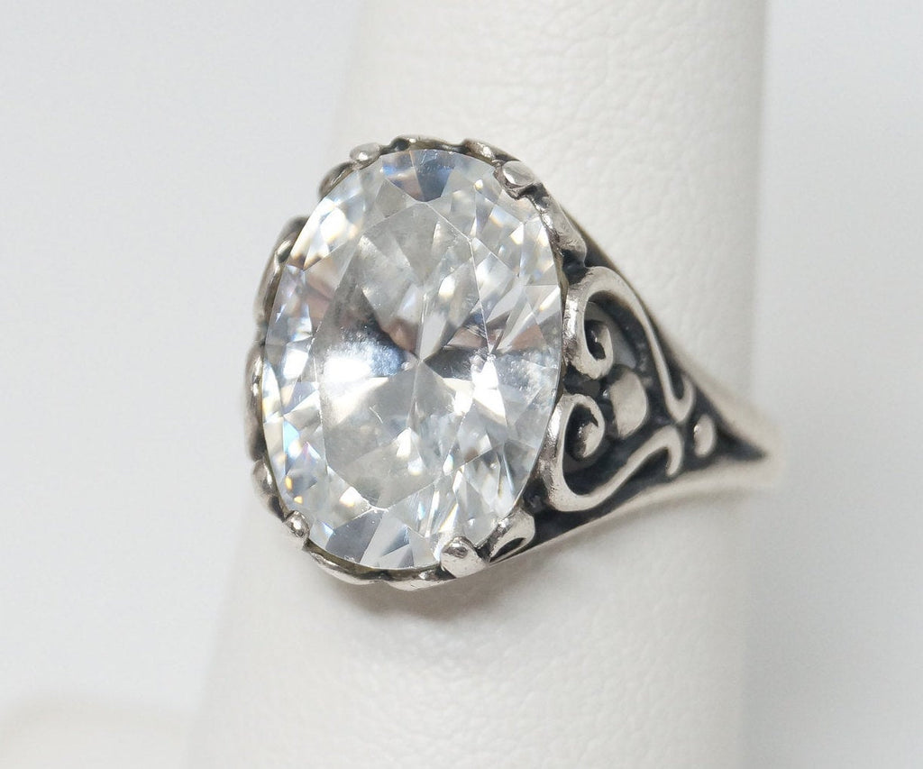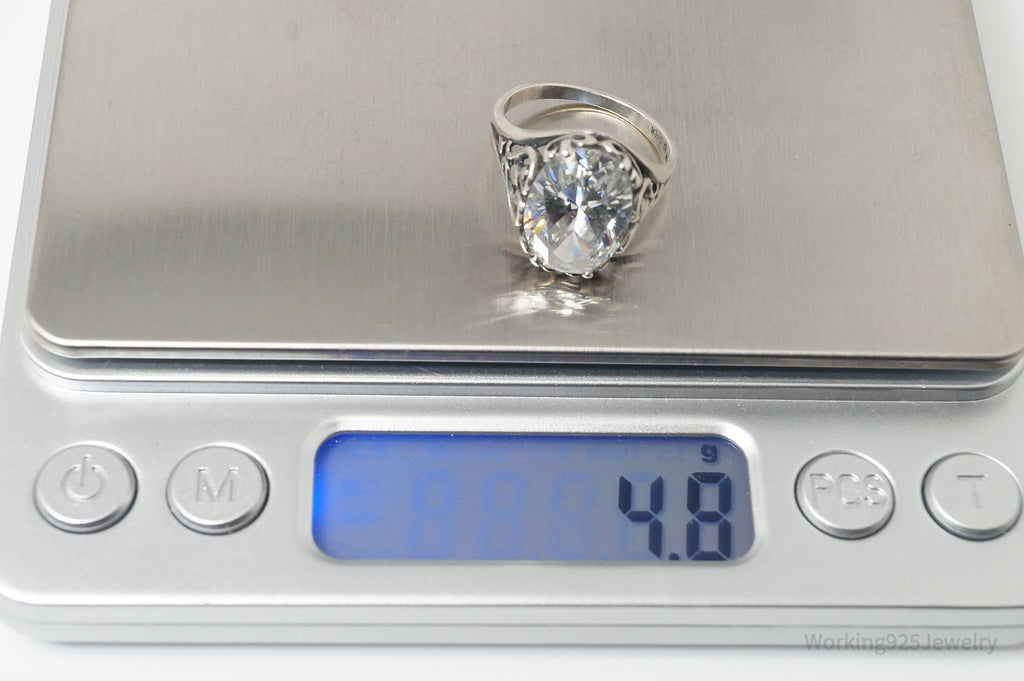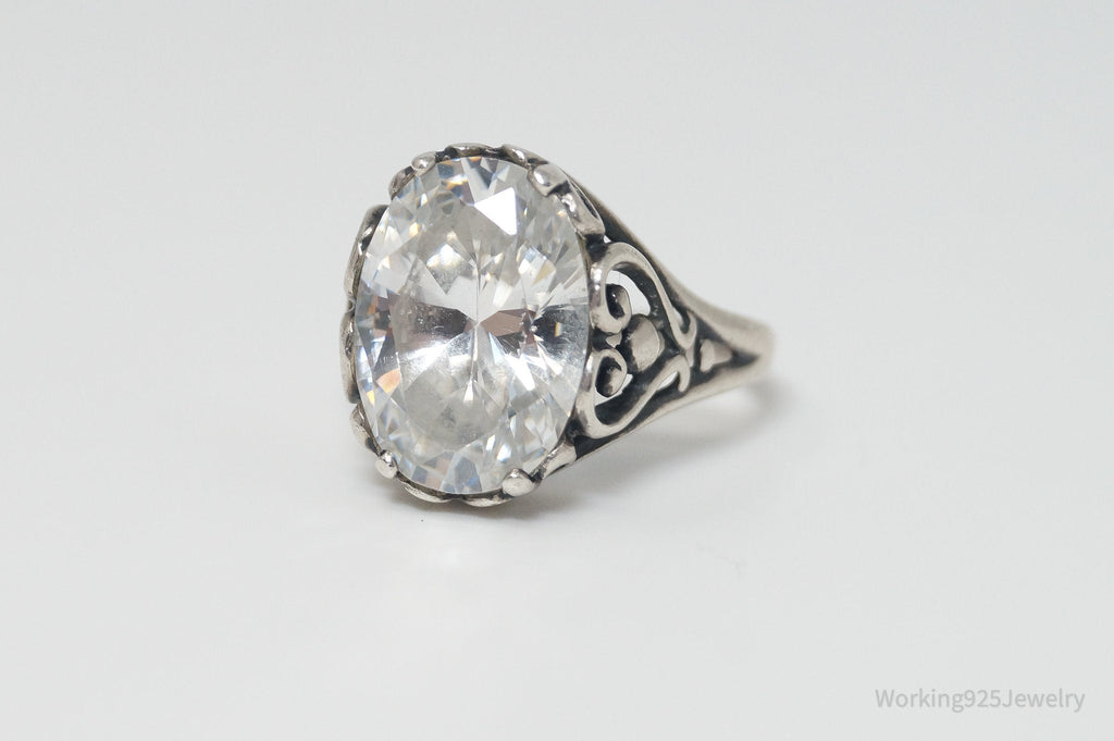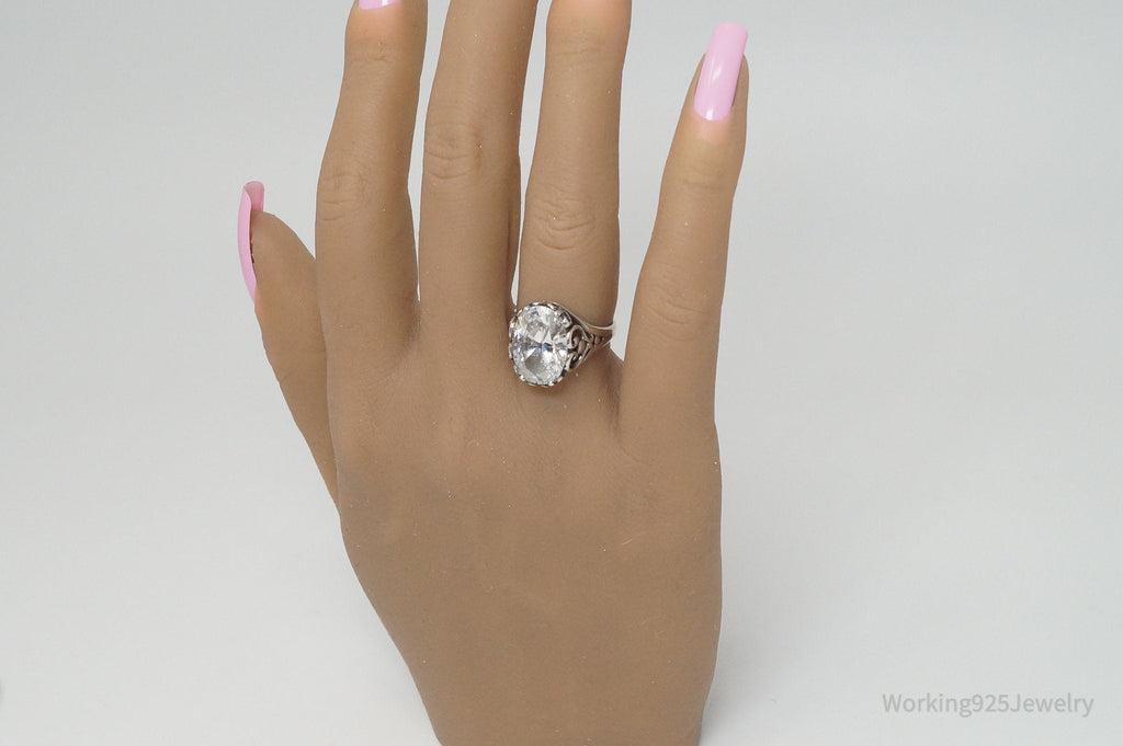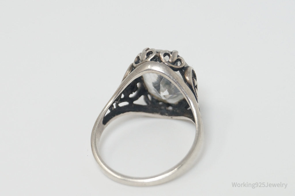 Vintage Designer KABANA CZ Scroll Swirl Heart Sterling Silver Ring - SZ 6.75
