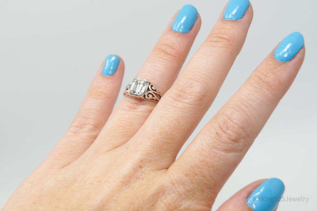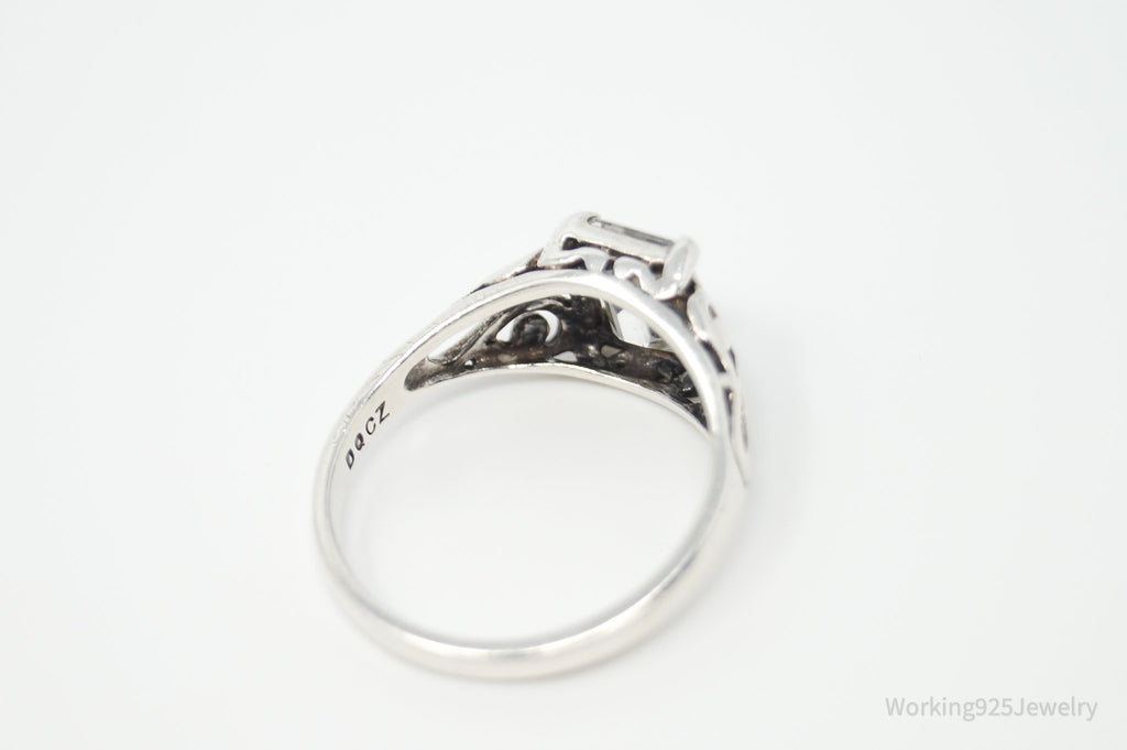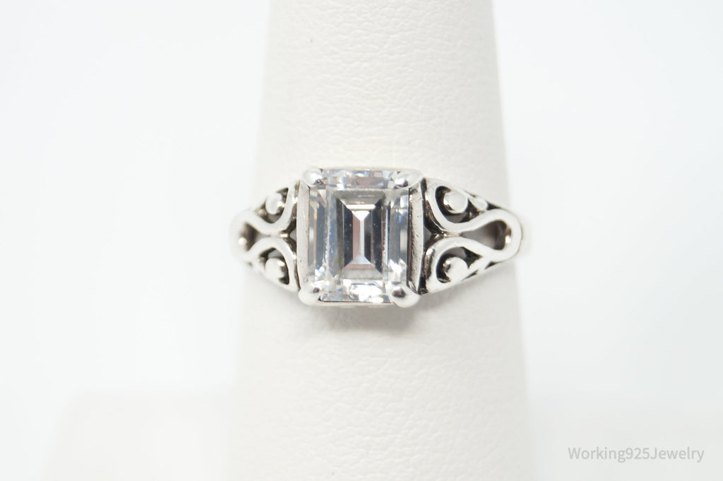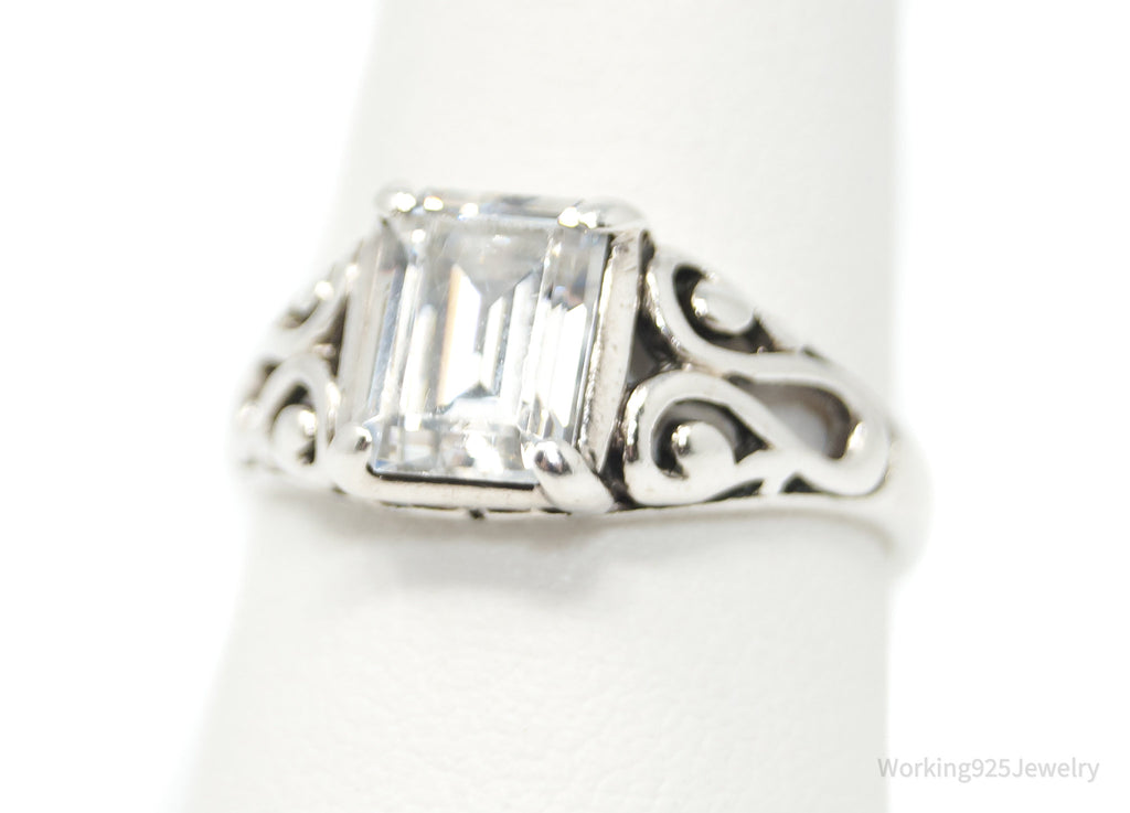 Vintage Designer KABANA CZ Scroll Swirl Sterling Silver Ring - Size 7