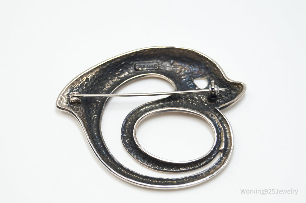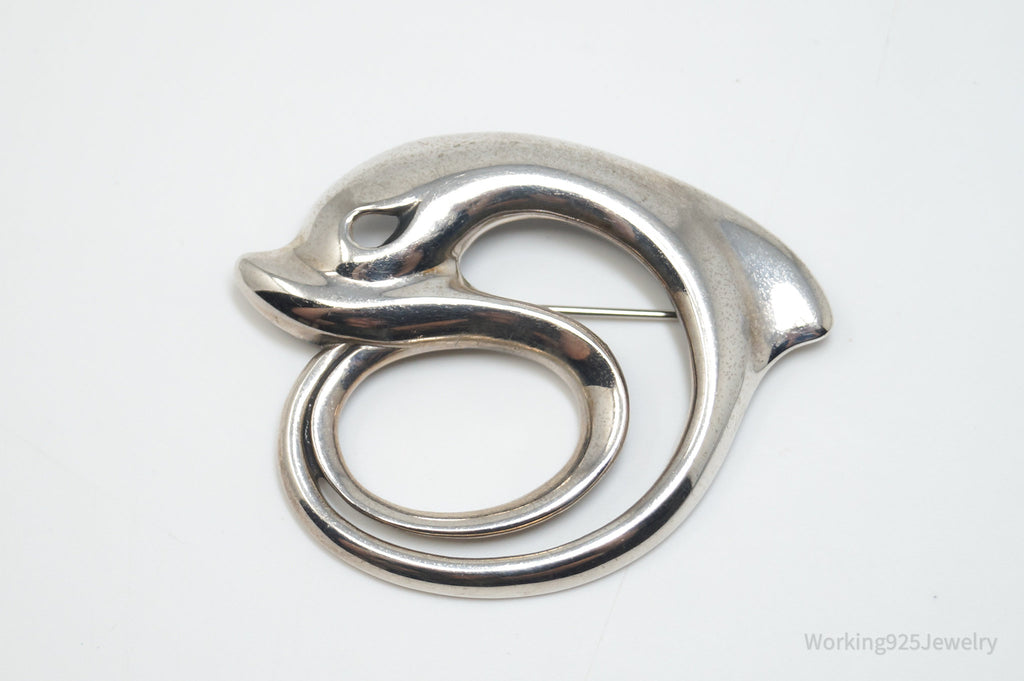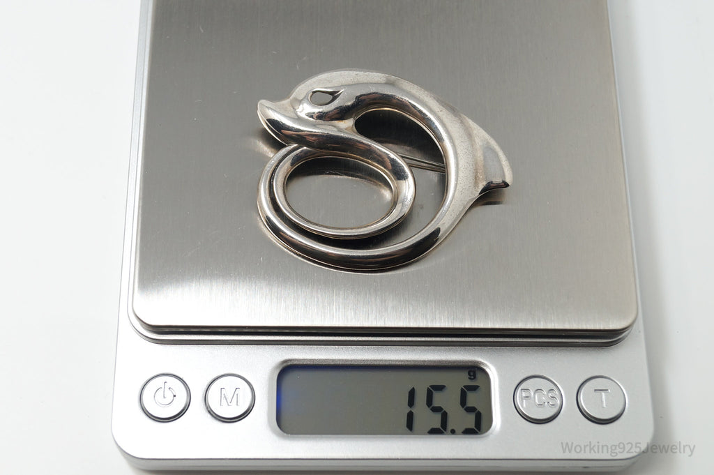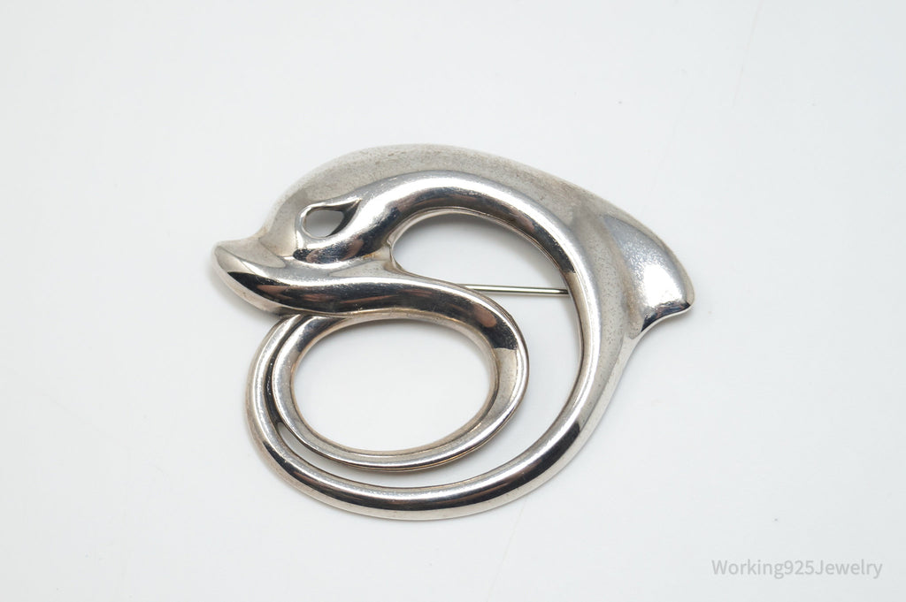 Vintage Designer KABANA Dolphin Sterling Silver Brooch Pin
