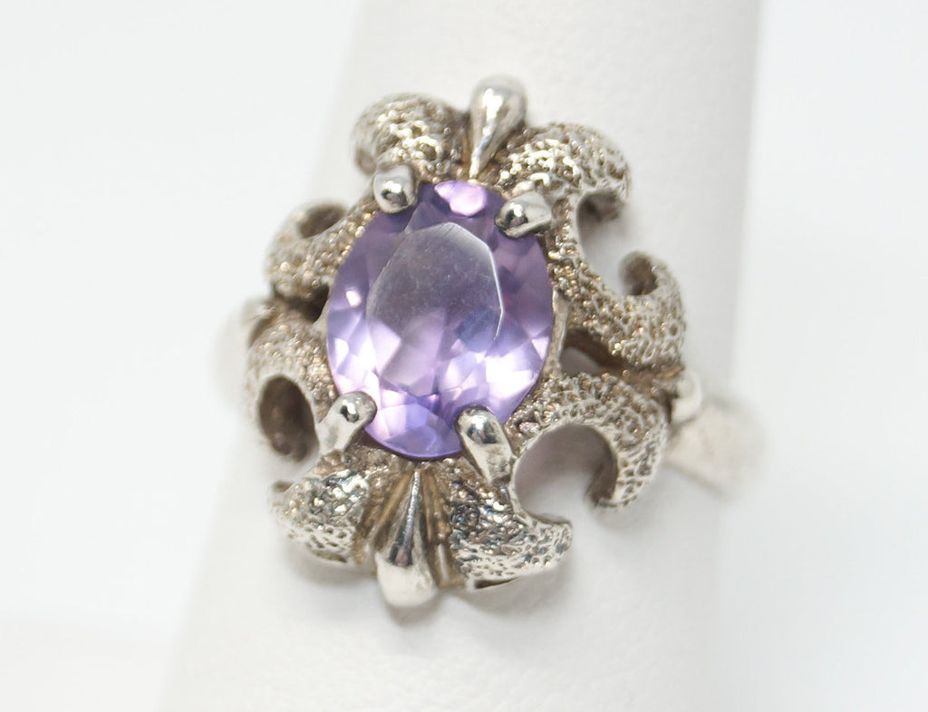 Vintage Designer Kabana KBN Amethyst Sterling Silver Ring - Sz 8