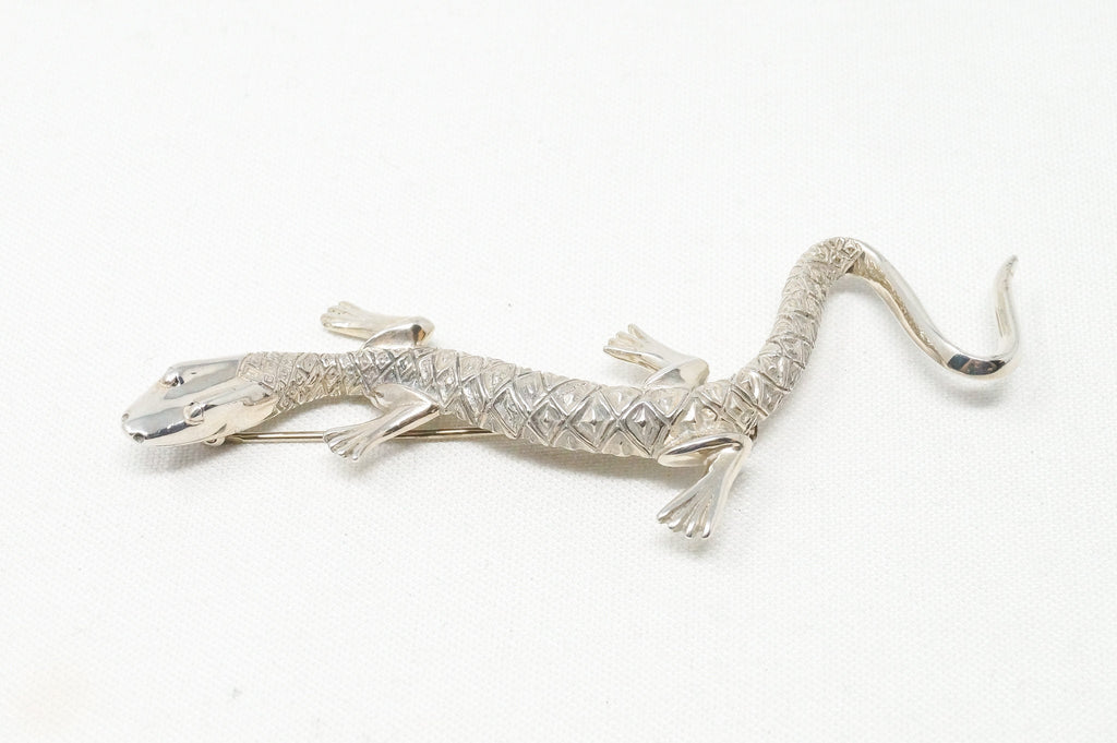 Vintage Designer KABANA Lizard Sterling Silver Southwestern Brooch Pin
