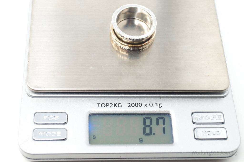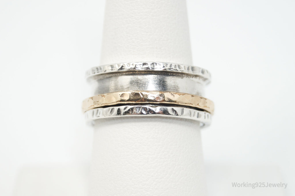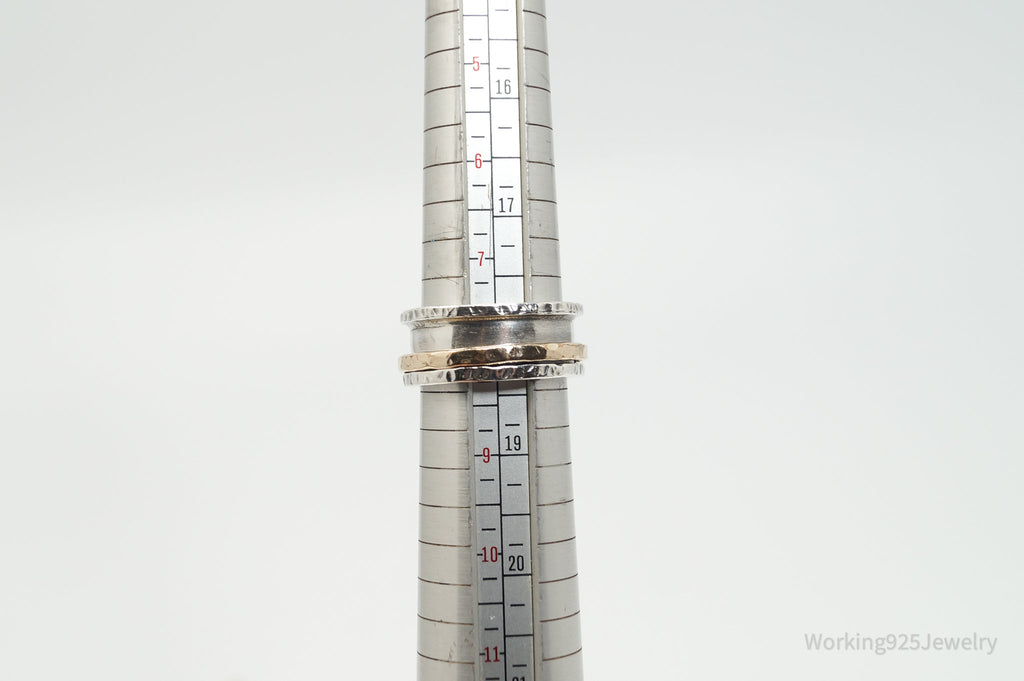 Vintage Designer KJ Brass Hammered Sterling Silver Spinner Ring - Sz 8.25