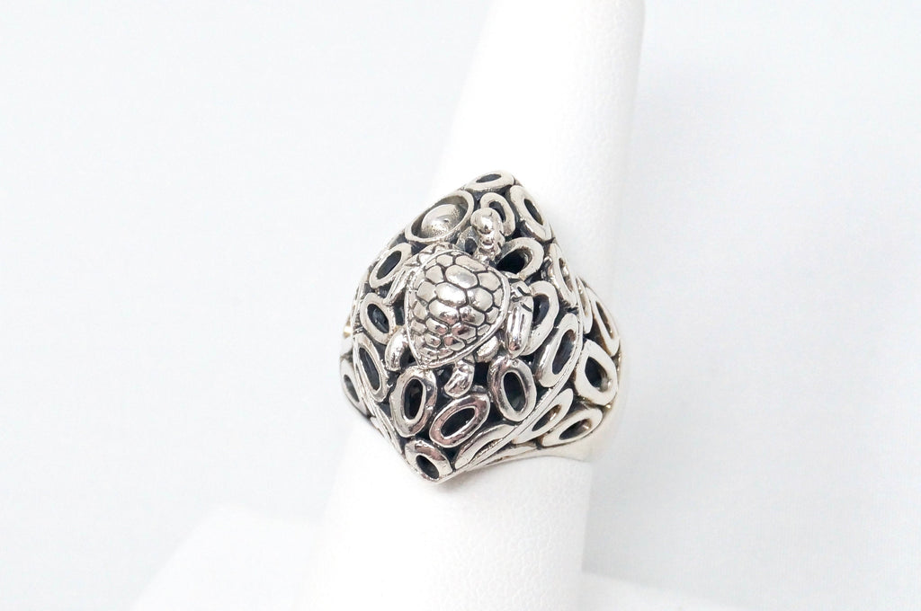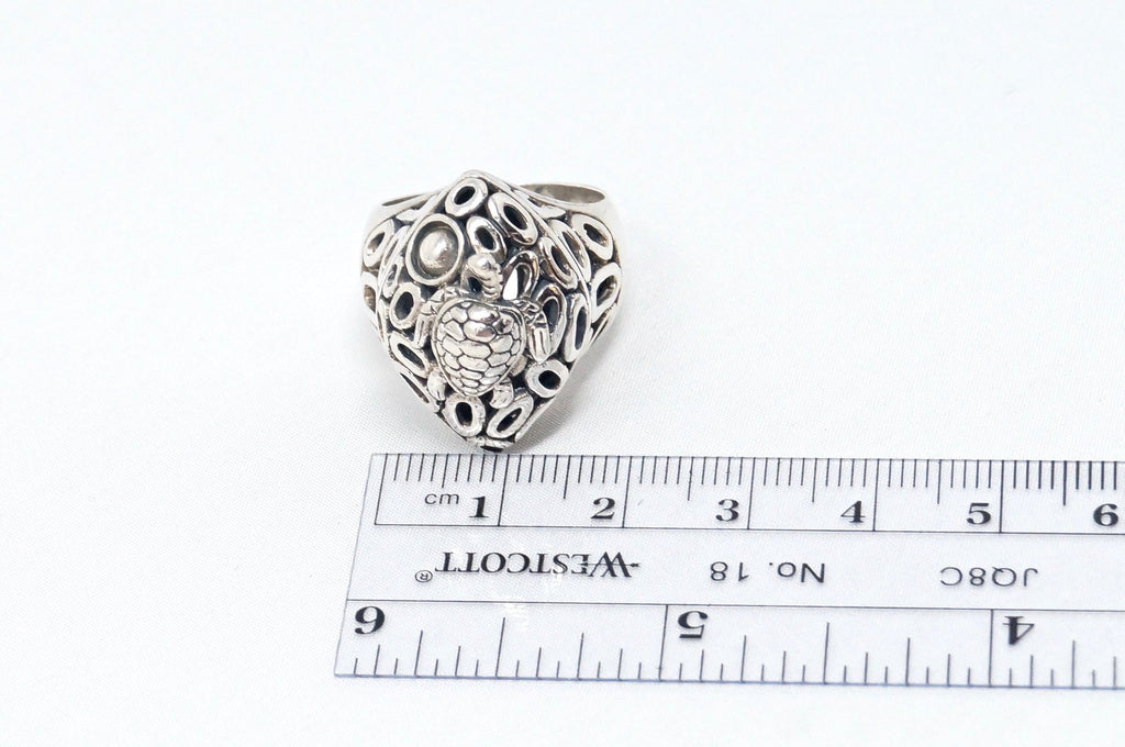Vintage Designer KL Large Sea Turtle Cut Out Sterling Silver Ring Sz 7.75
