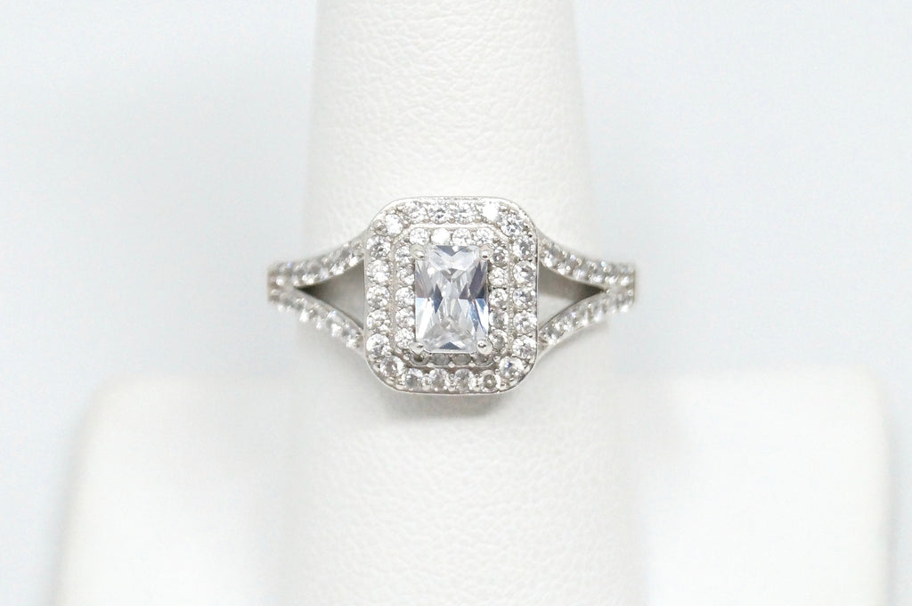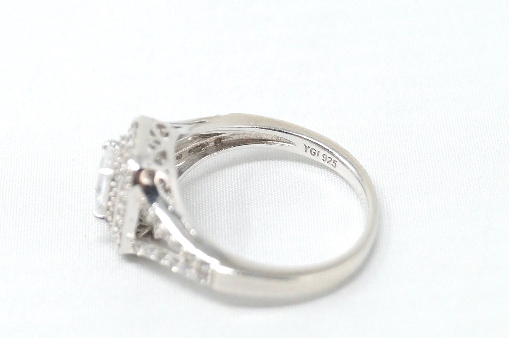 Vintage Designer Large Simulated Diamond Statement Ring Sterling Silver Sz 8