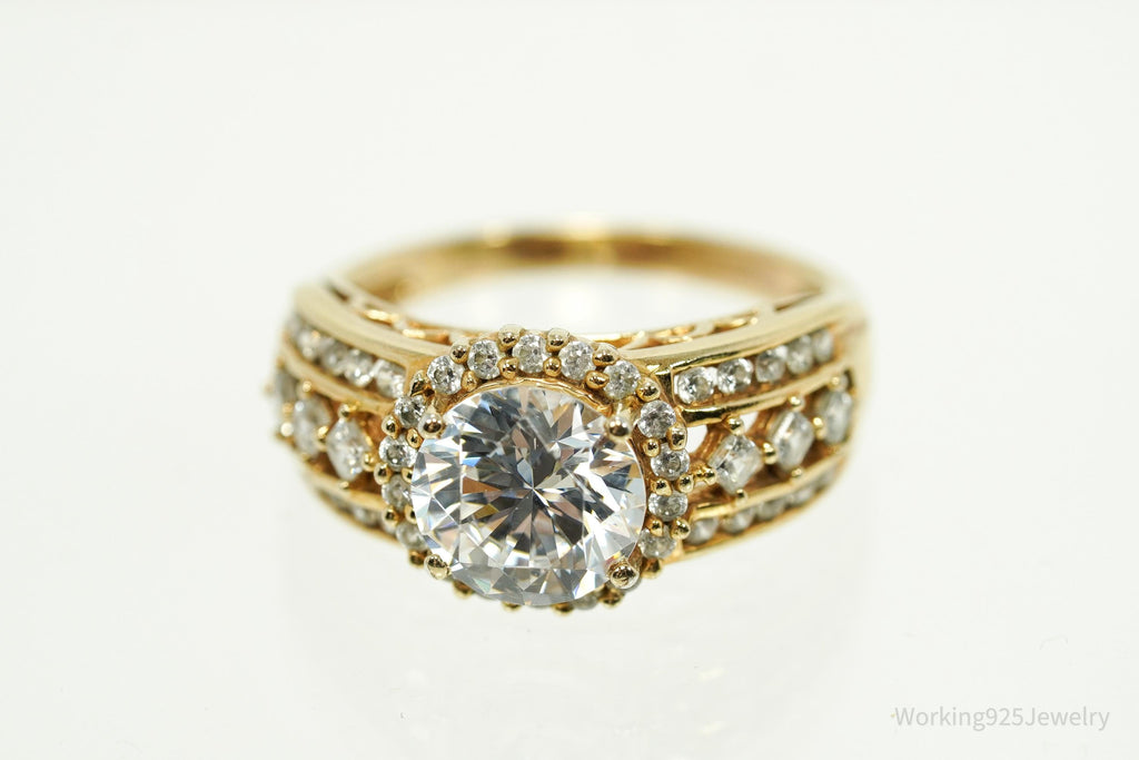 Vintage Designer MEDA Cubic Zirconia Gold Vermeil Sterling Silver Ring - Size 9