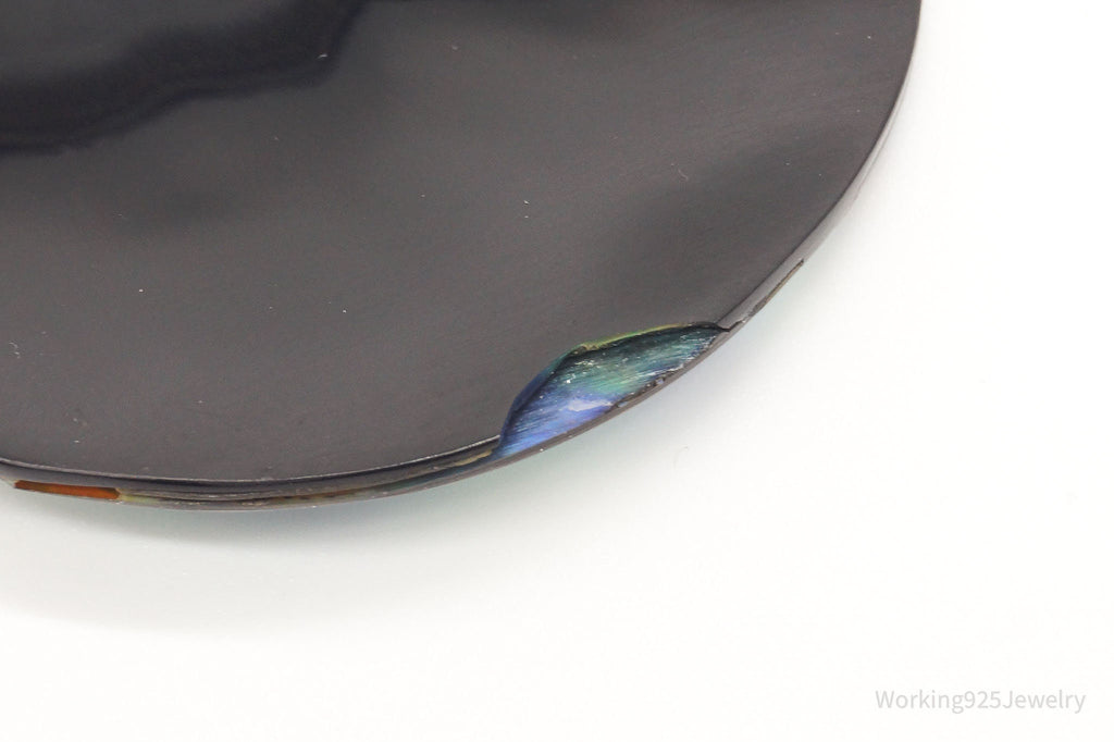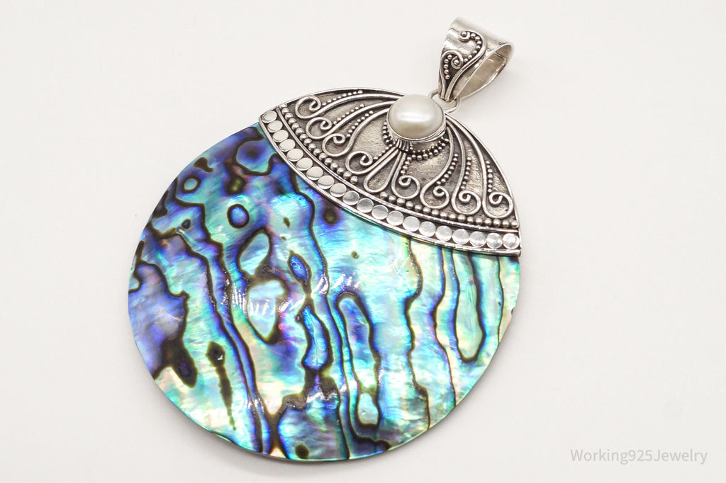 Vintage Designer Merav Large Abalone Shell Pearl Sterling Silver Pendant