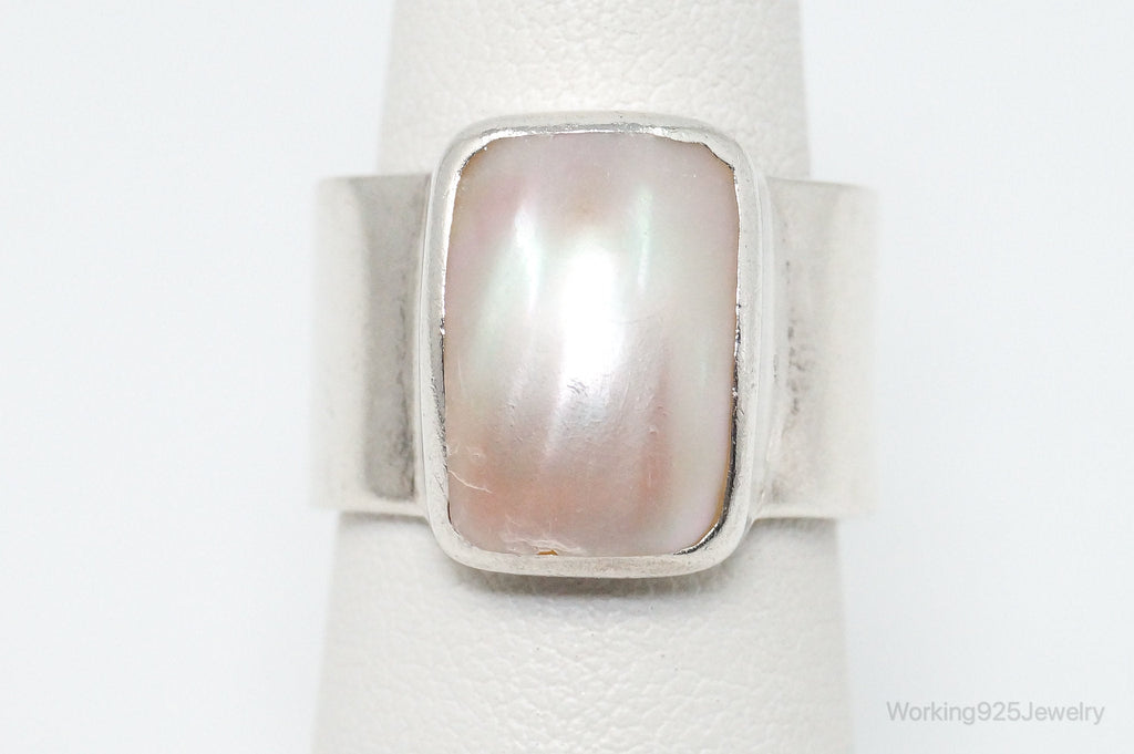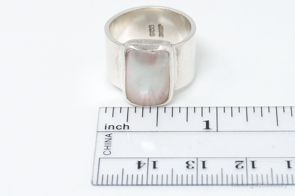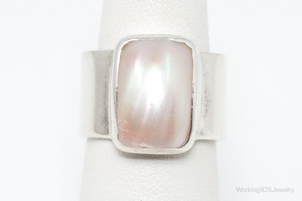 Vintage Designer Mother Of Pearl Sterling Silver Ring - SZ 7.25