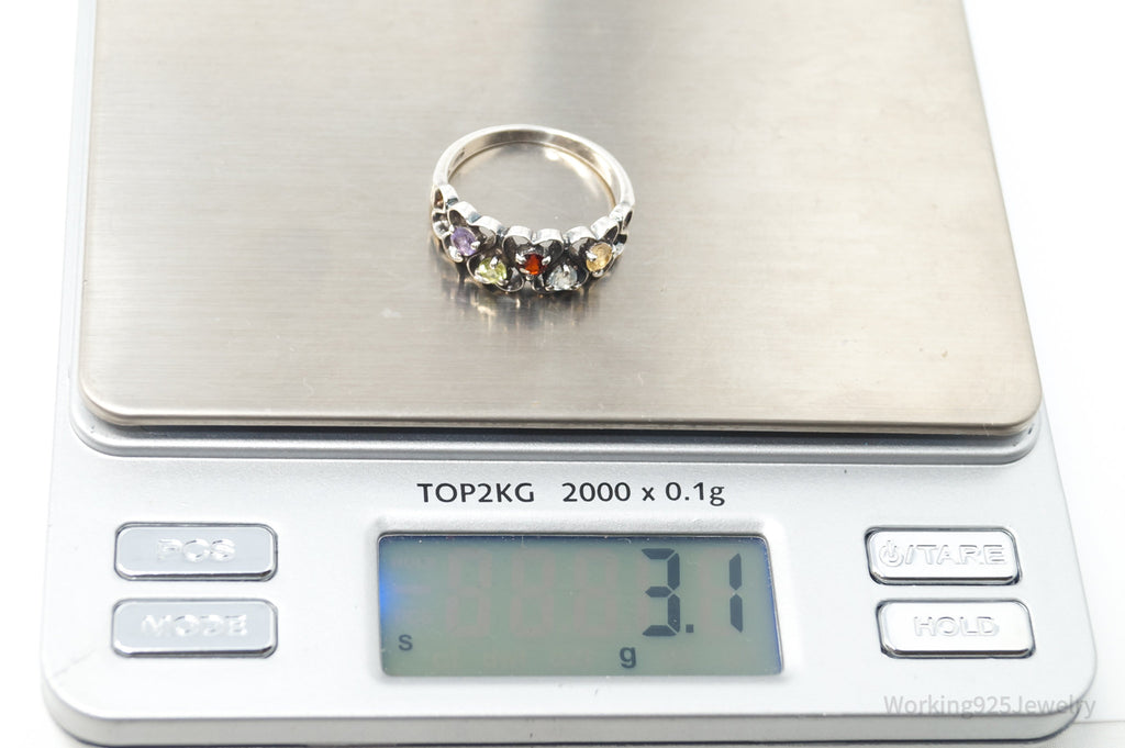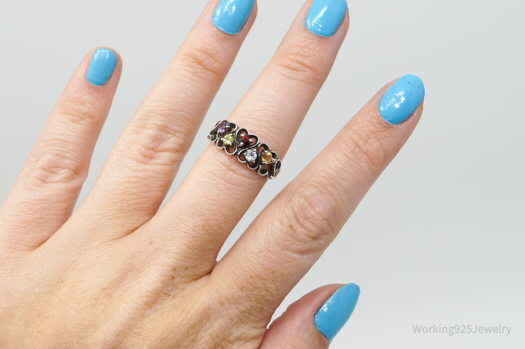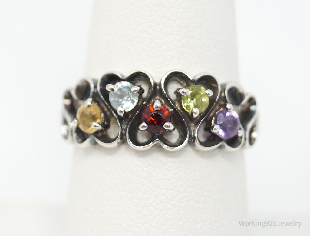 Vintage Designer Multi Gem Open Hearts Sterling Silver Ring - Size 8