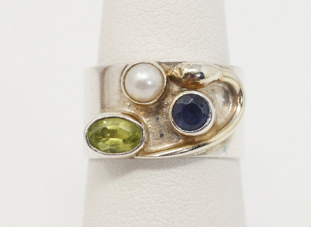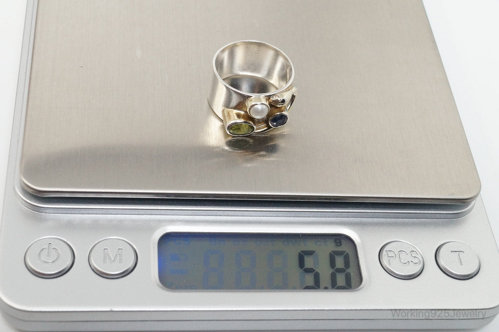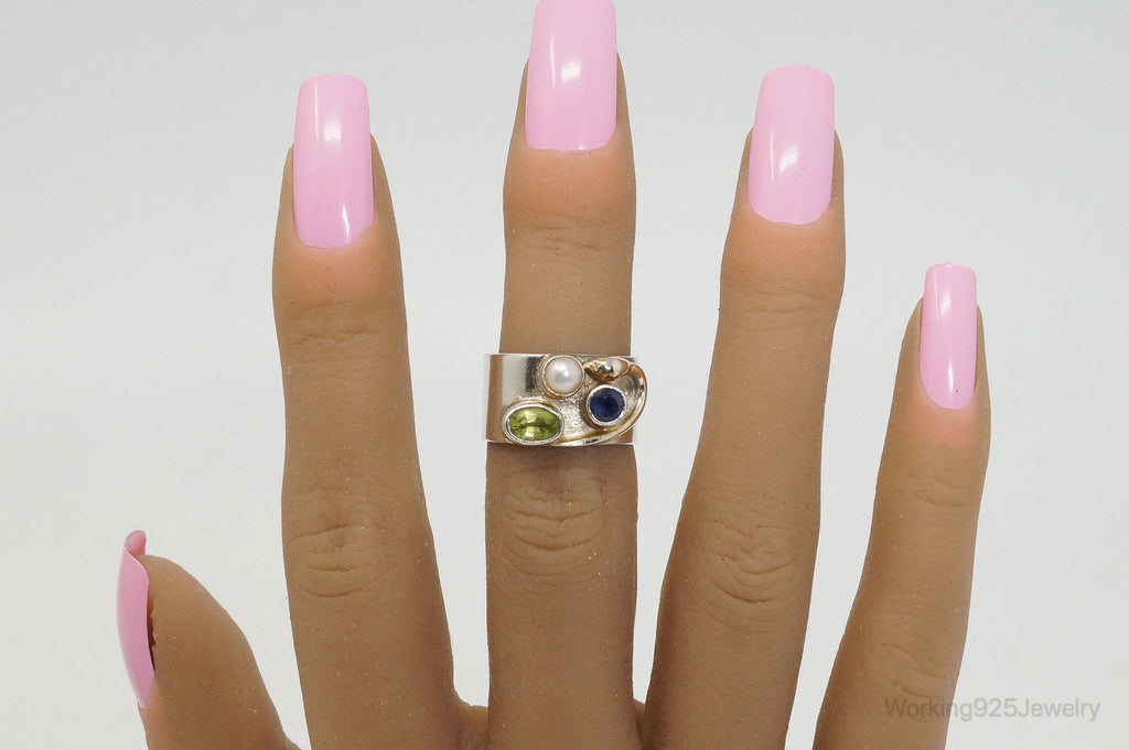 Vintage Designer Multi Gem Sterling Silver Ring - SZ 6.25