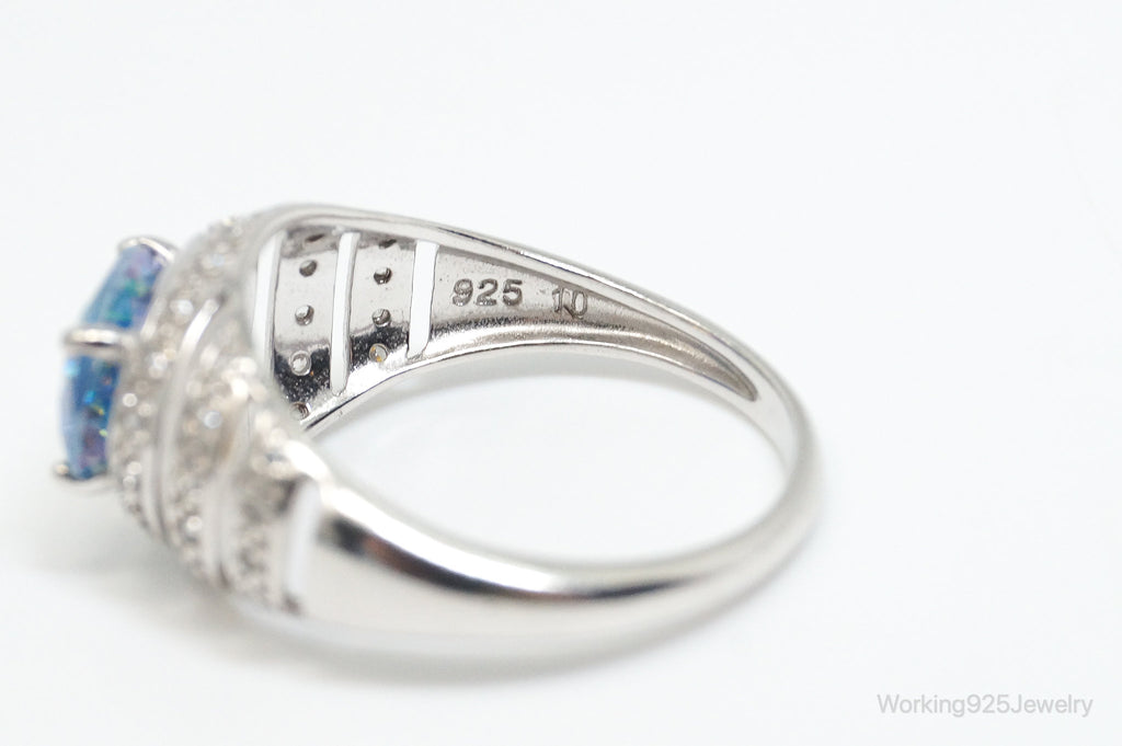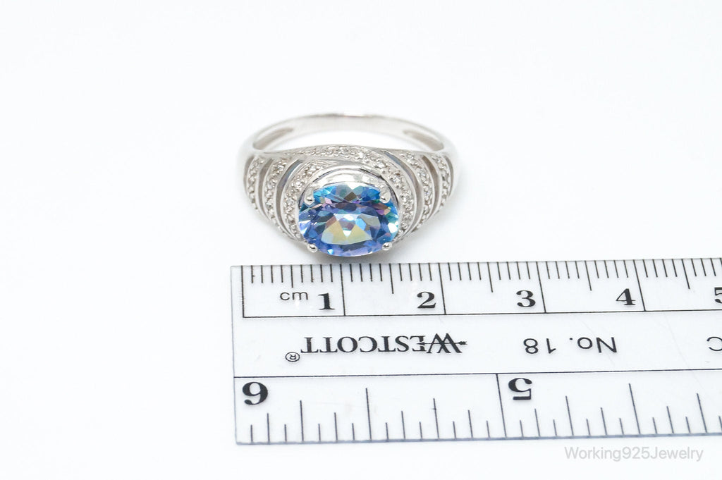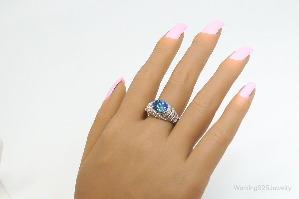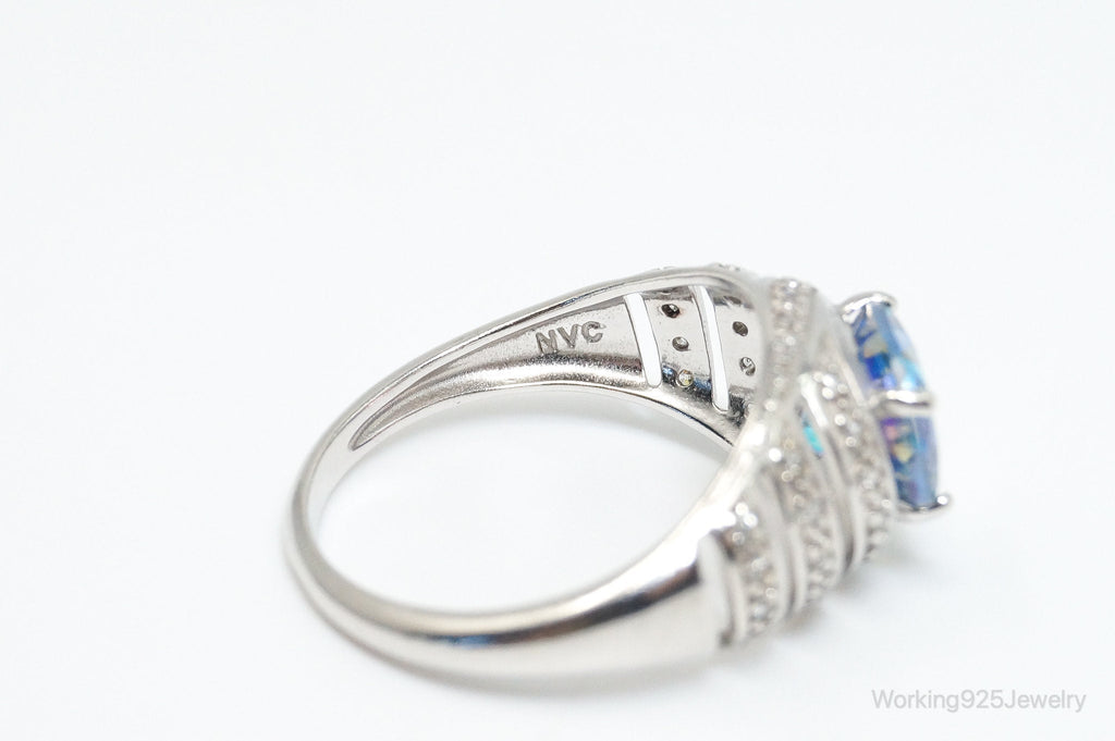 Vintage Designer NVC Blue Mystic Topaz CZ Sterling Silver Ring - Size 10