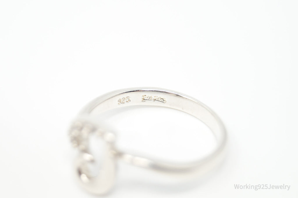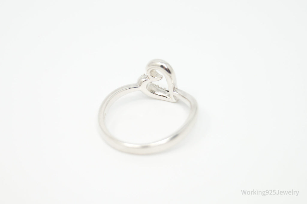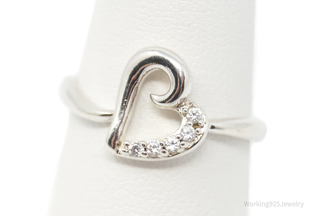 Vintage Designer Open Heart CZ Sterling Silver Statement Ring - Size 7.5