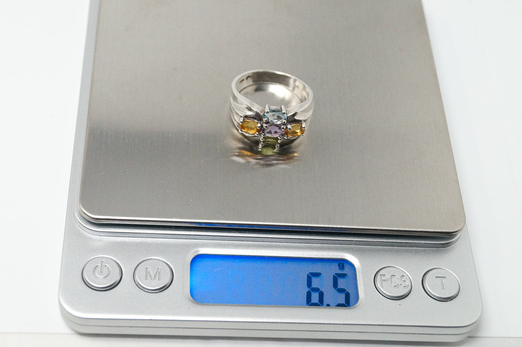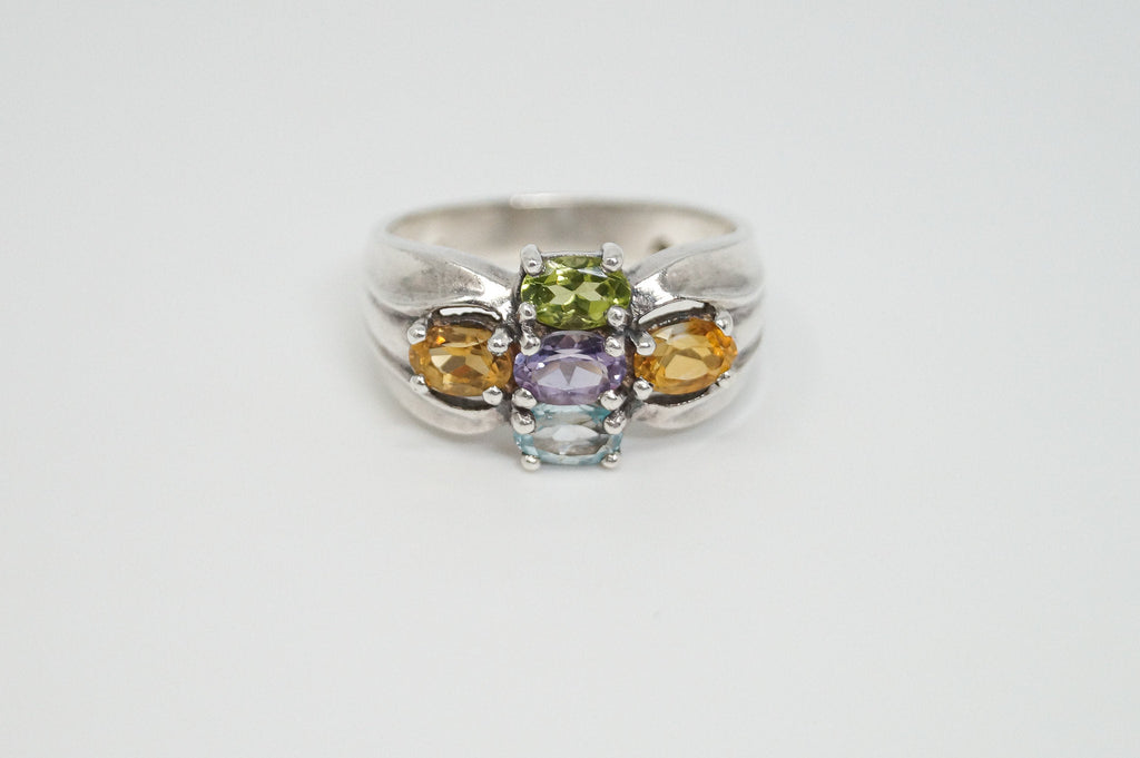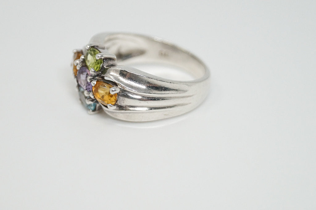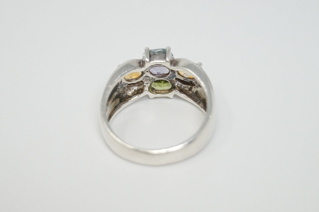 Vintage Designer PD Art Deco Multi Gem Sterling Silver Ring - Size 10