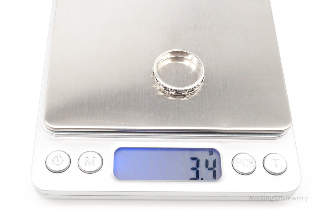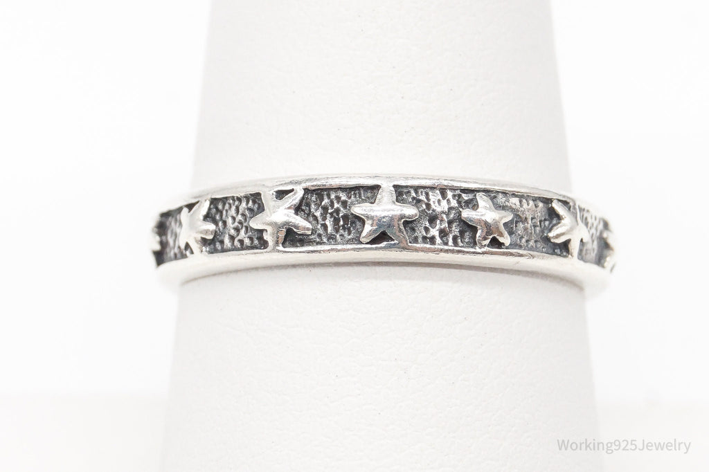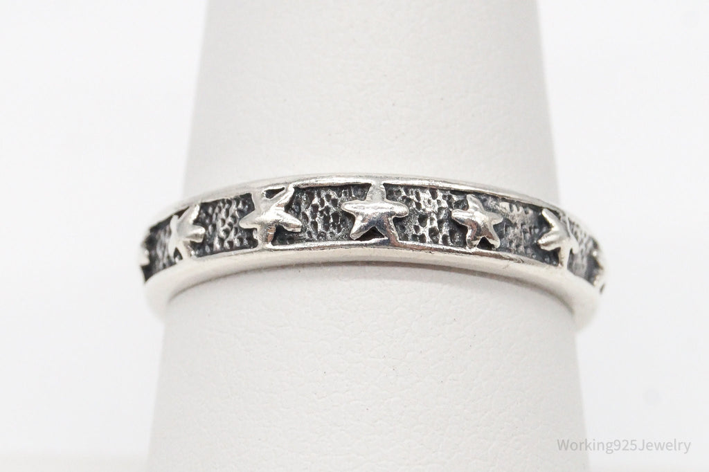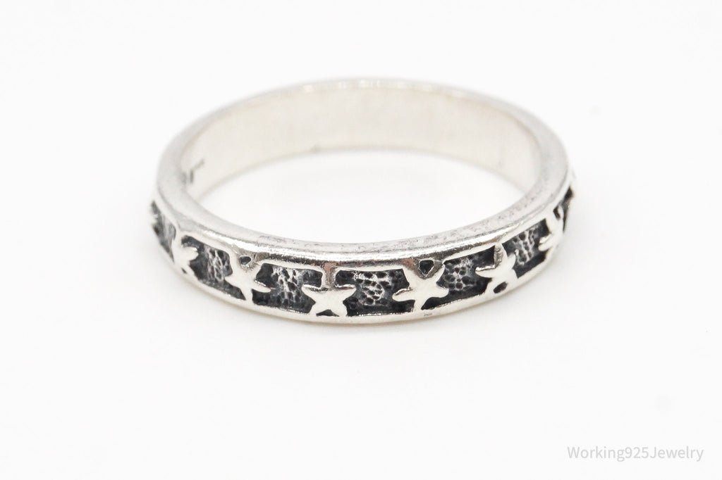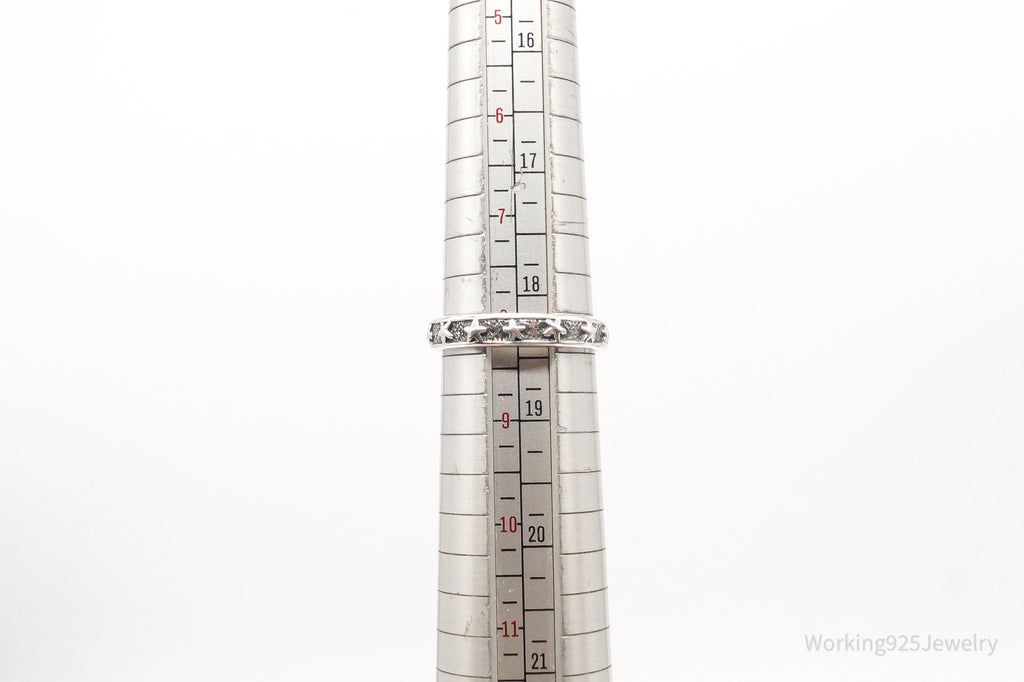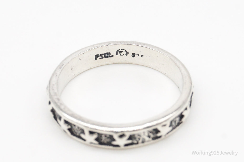 Vintage Designer PSCL Star Pattern Sterling Silver Band Ring - Size 8.25