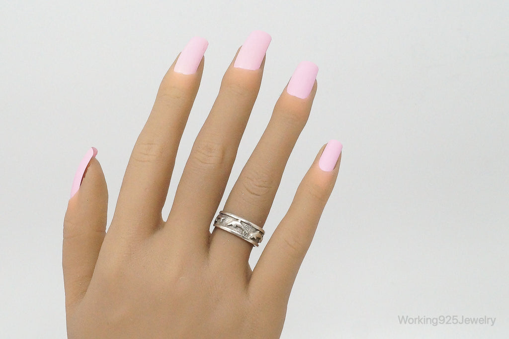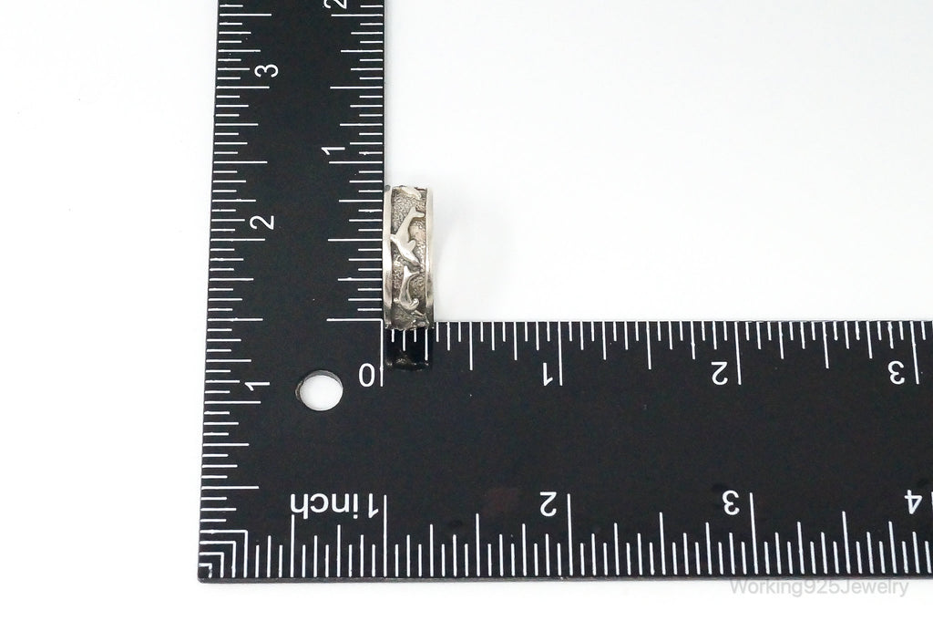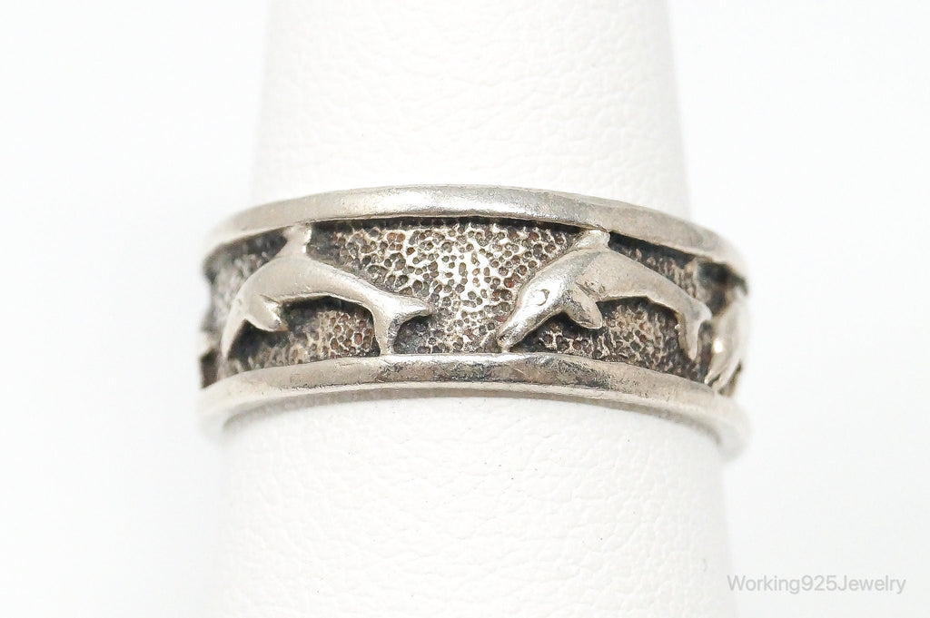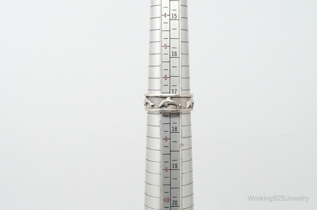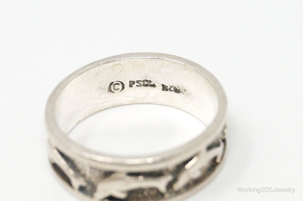 Vintage Designer PSCL Swimming Dolphins Sterling Silver Band Ring - Size 7