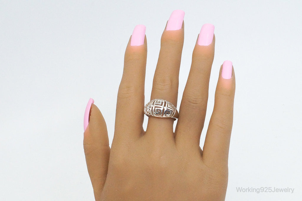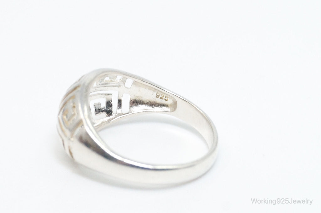 Vintage Designer RJ Greek Key Cut-Out Design Sterling Silver Ring - SZ 10
