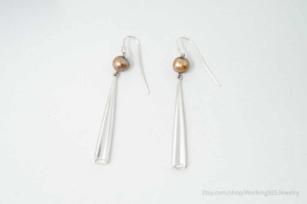 Vintage Designer Robert Lee Morris RLM Modernist Pearl Sterling Silver Earrings