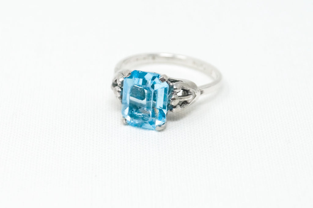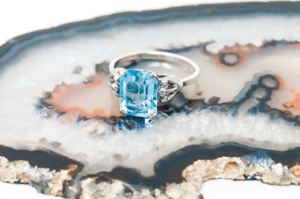 Vintage Designer Sarah Coventry Blue Topaz Sterling Silver Ring - Sz 6