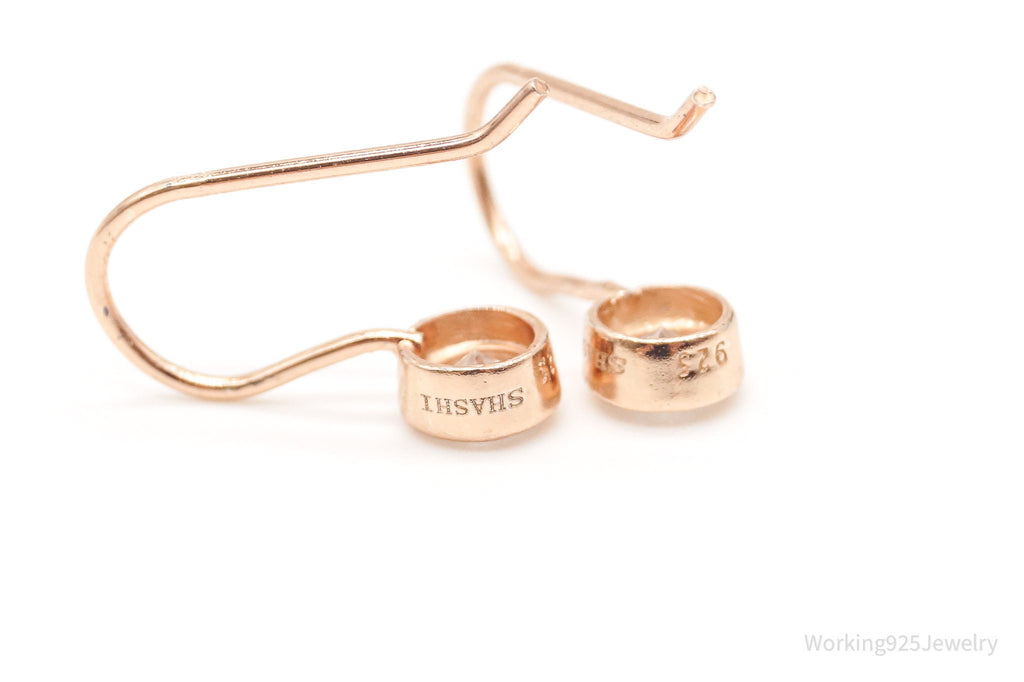 Vintage Designer Shashi CZ Rose Gold Vermeil Sterling Silver Earrings