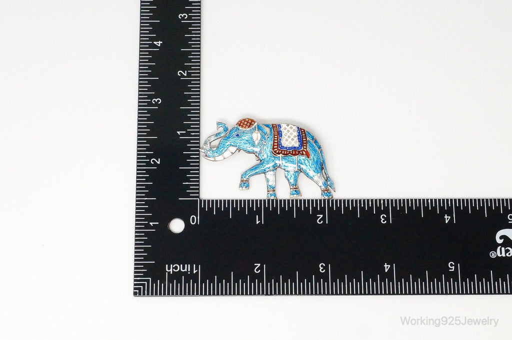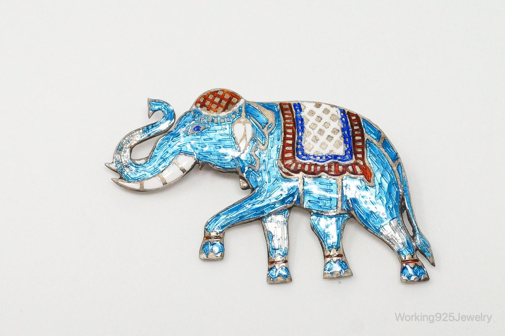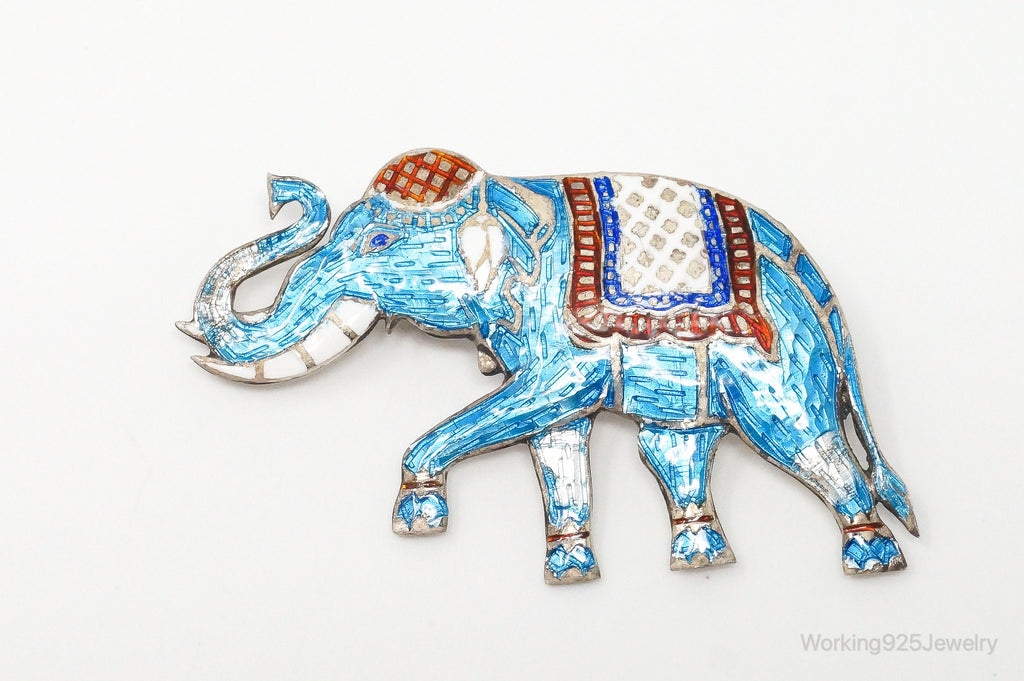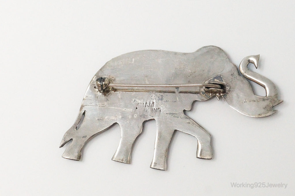 Vintage Designer SIAM NIELLO Elephant Enamel Sterling Silver Brooch Pin