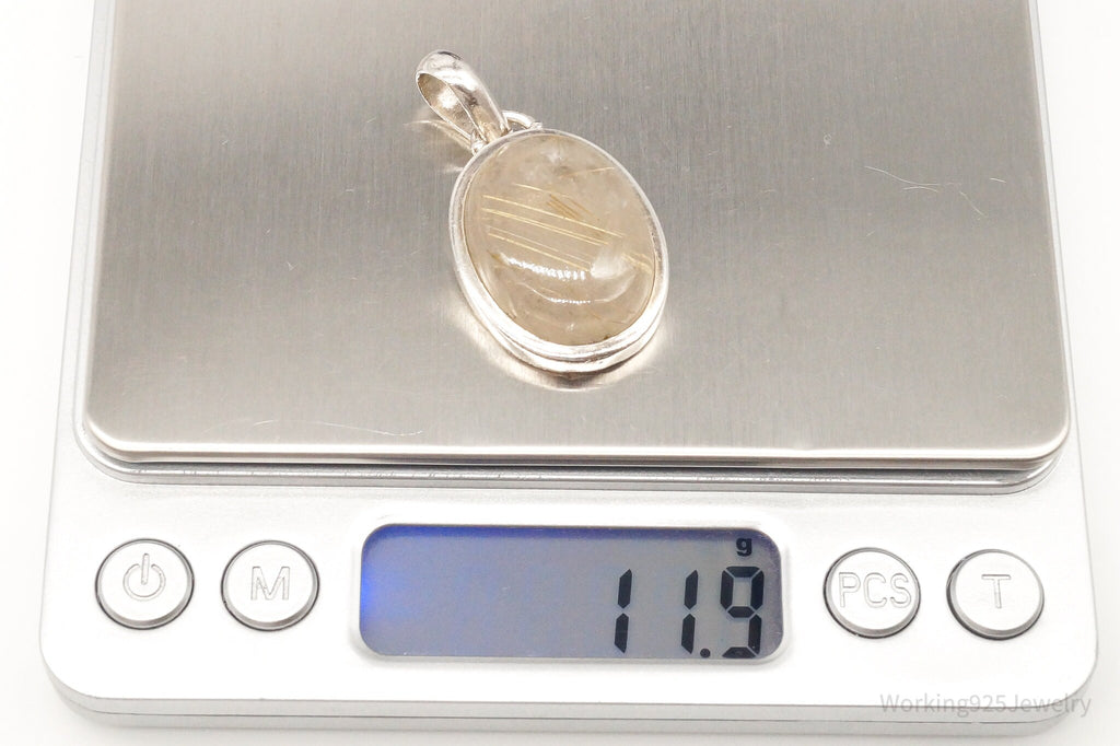 Vintage Designer SJ Rutilated Quartz Sterling Silver Pendant