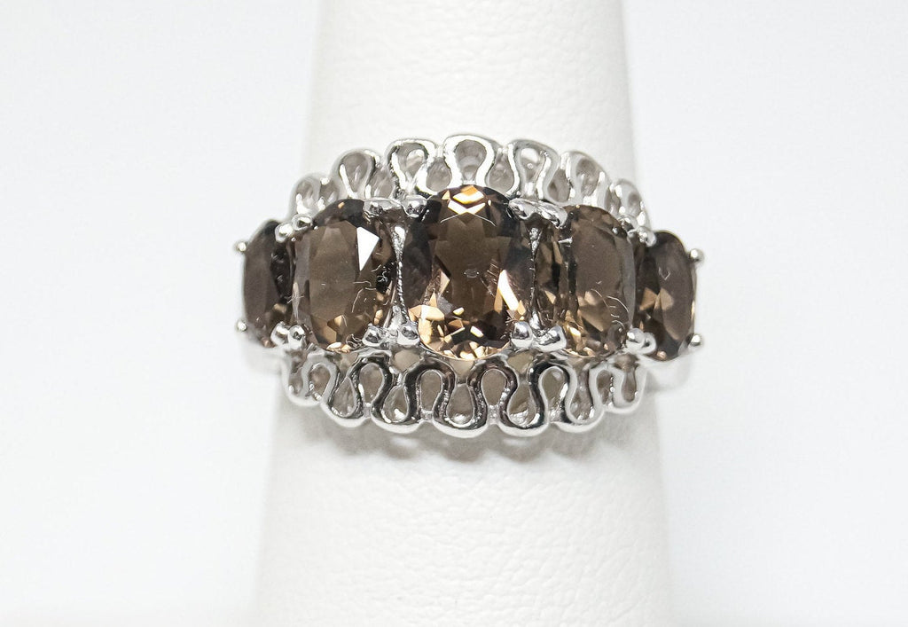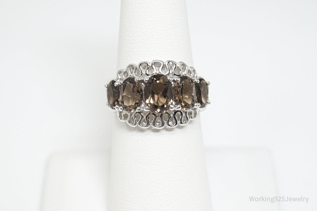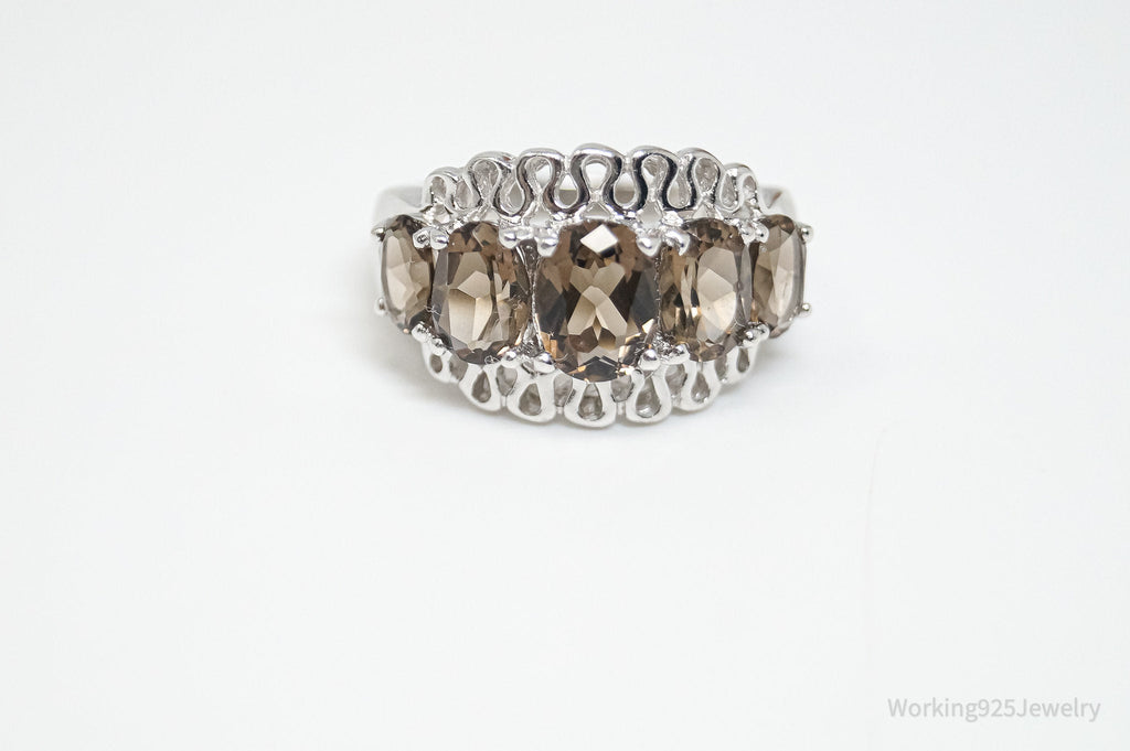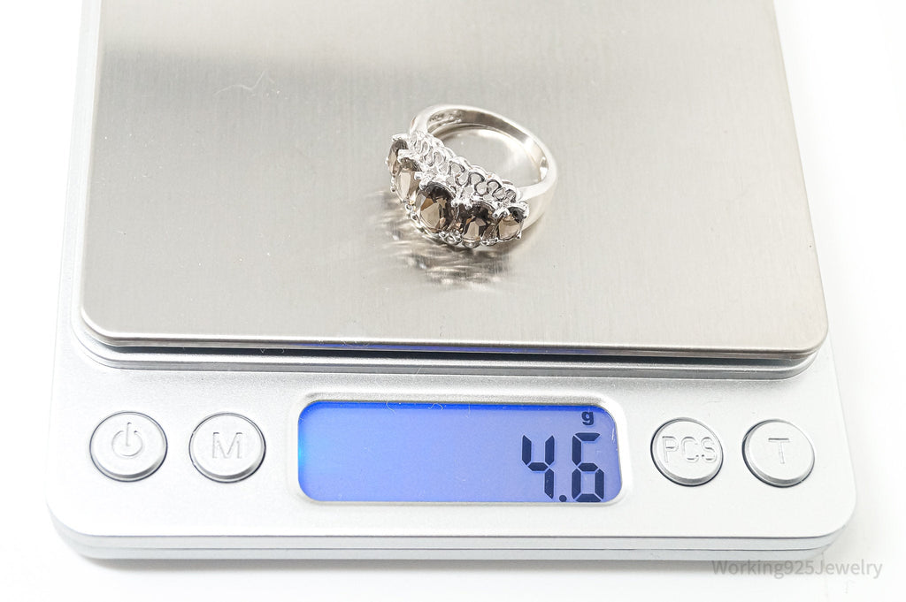 Vintage Designer Smoky Topaz Sterling Silver Statement Ring - Size 6.75