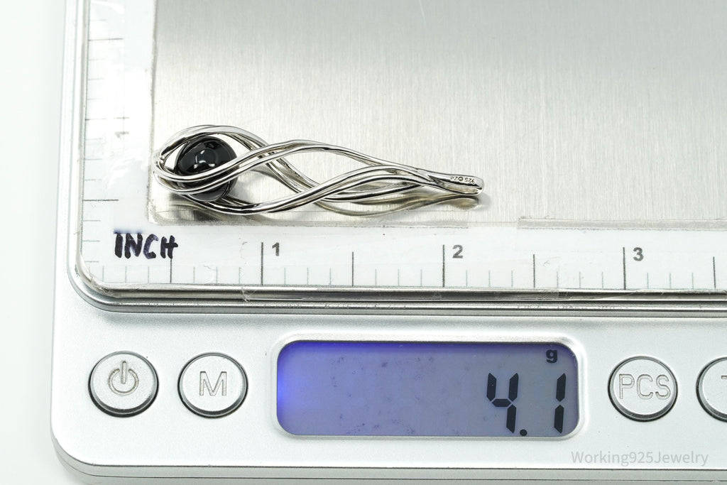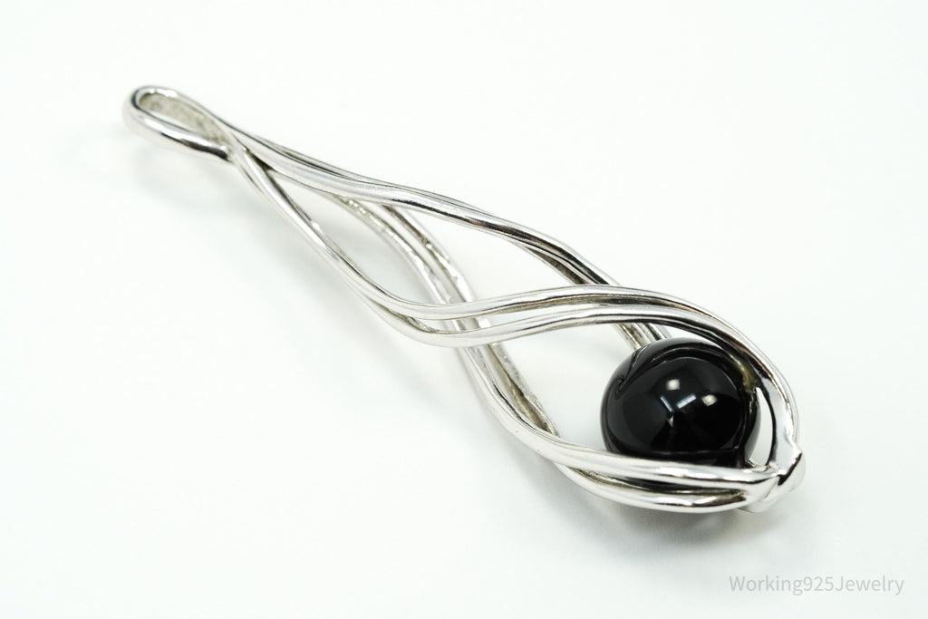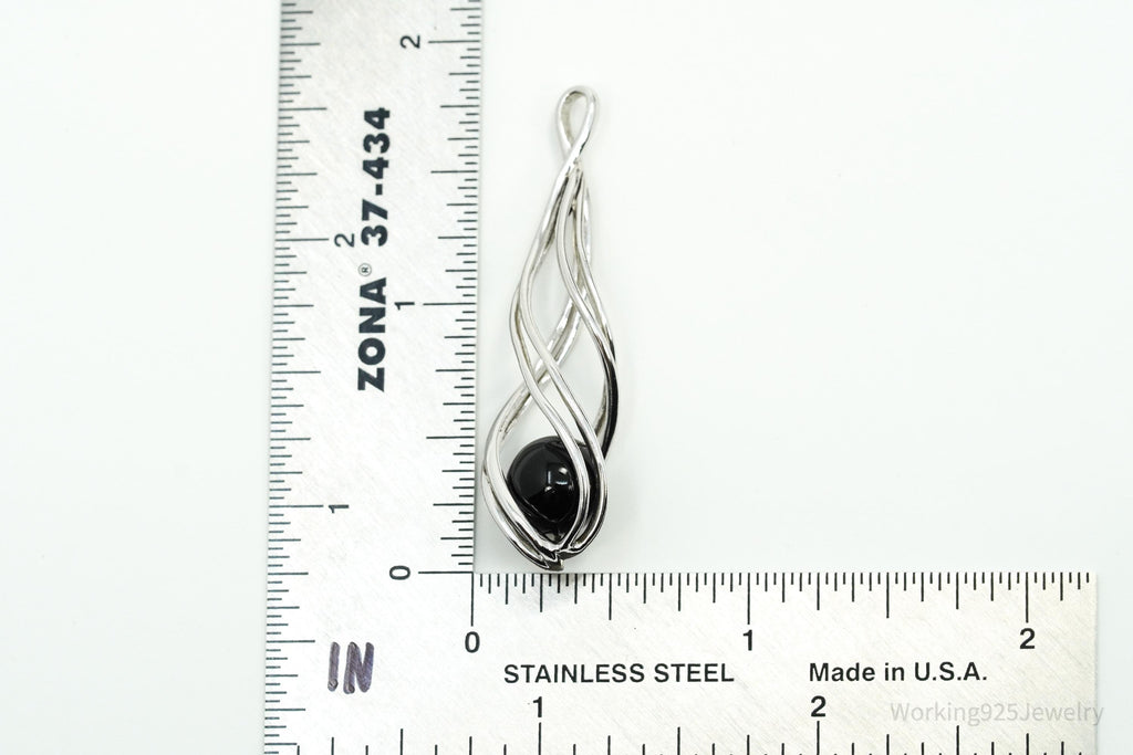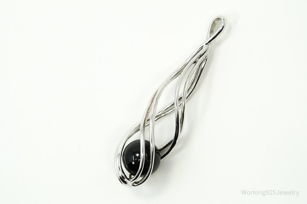 Vintage Designer Spiral Caged Black Onyx Sterling Silver Necklace Pendant