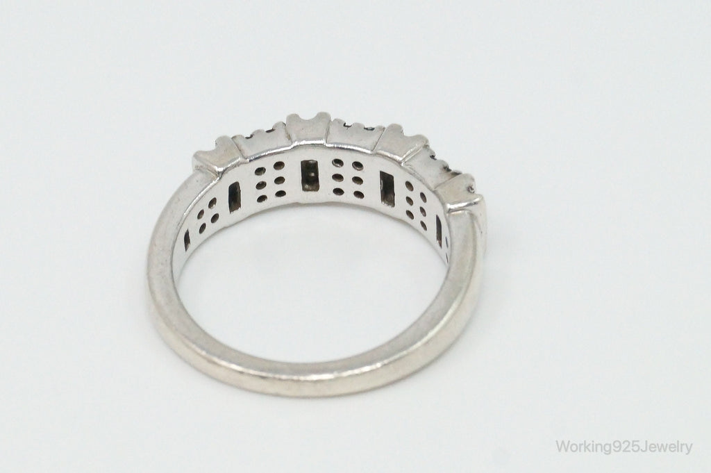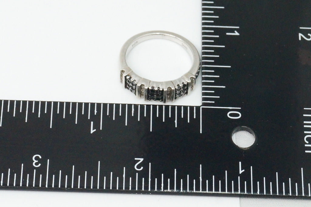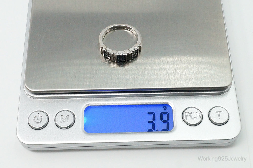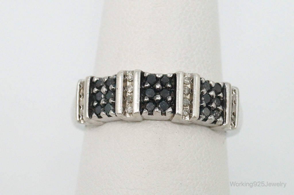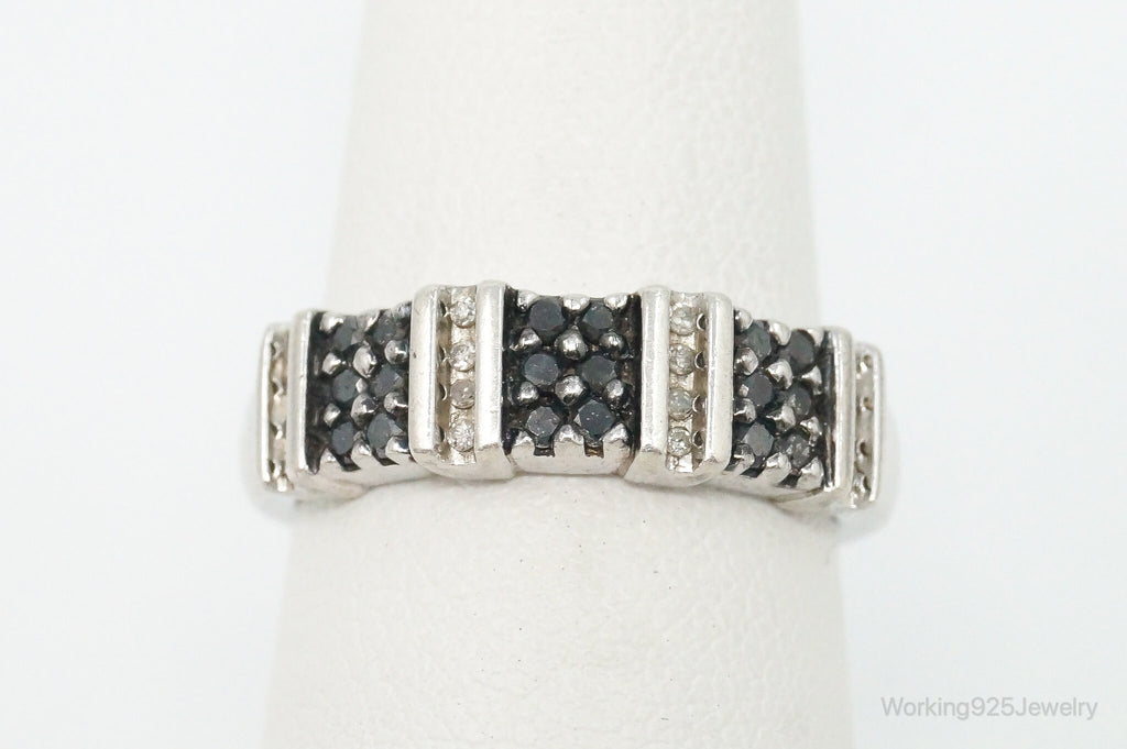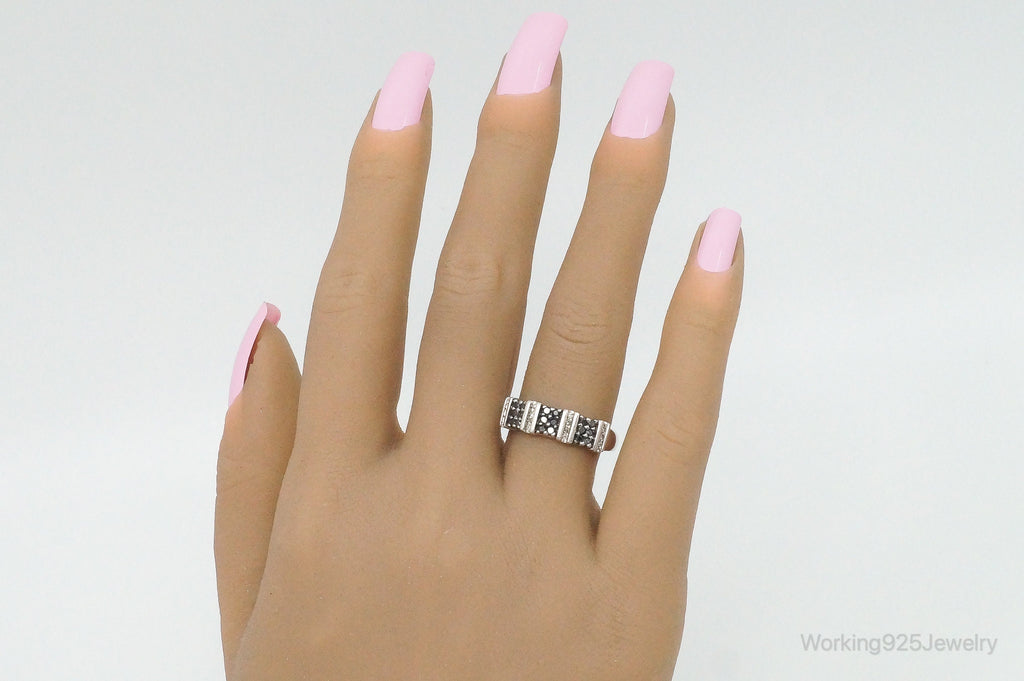 Vintage Designer Sun Black & White Diamond Sterling Silver Ring - Size 7