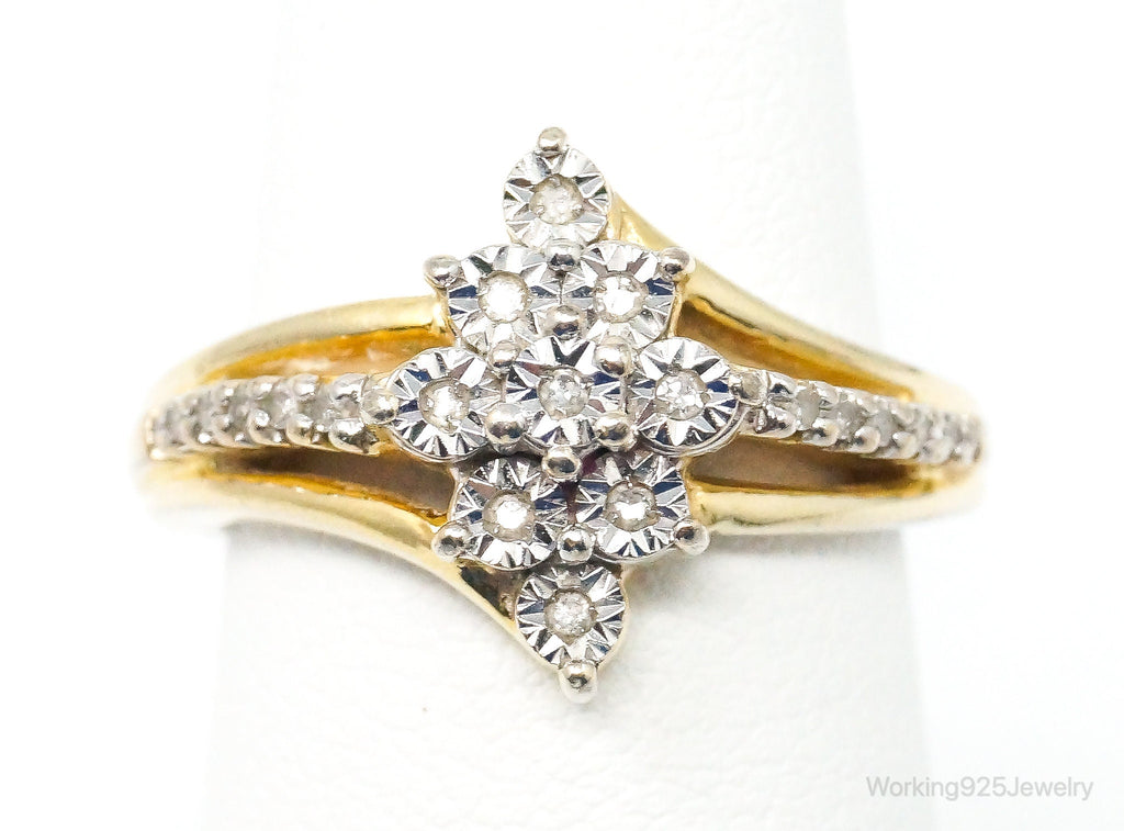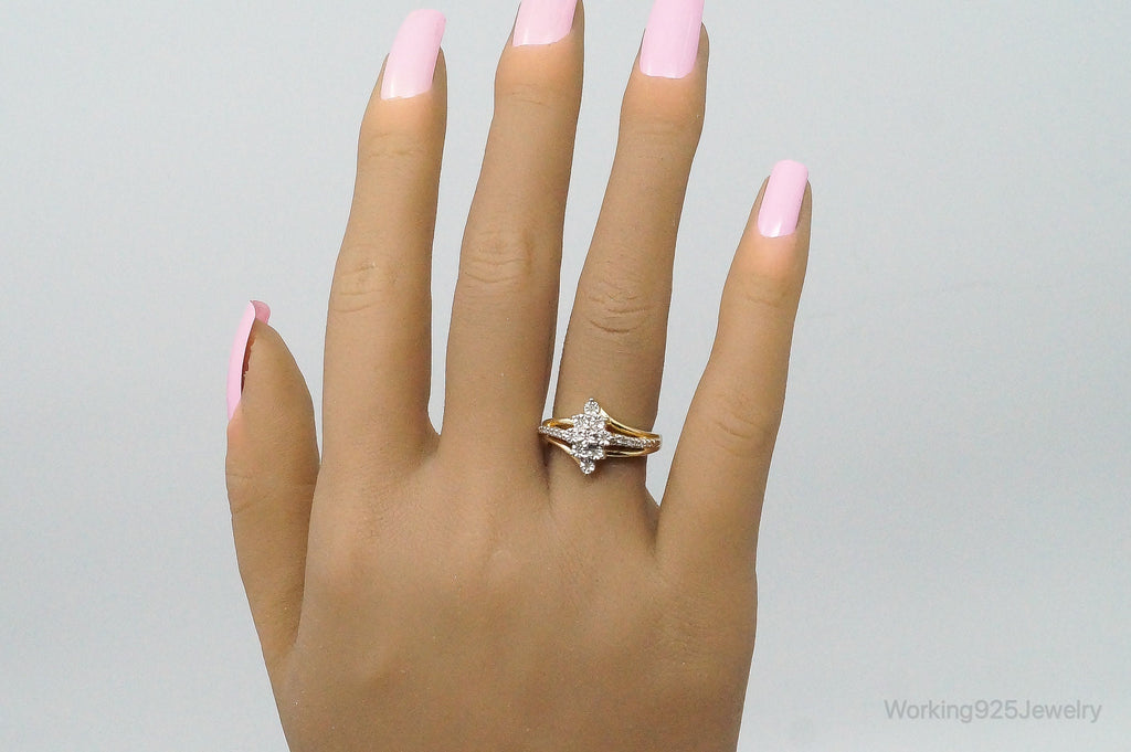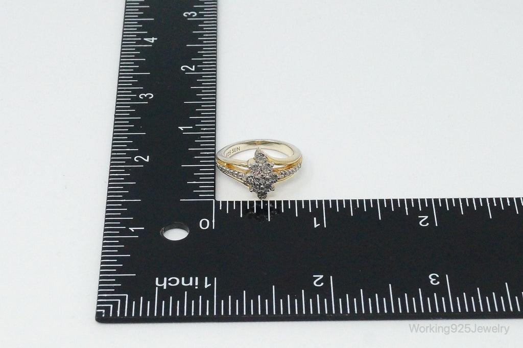 Vintage Designer SUN Diamond Gold Vermeil Sterling Silver Ring - Size 5.5