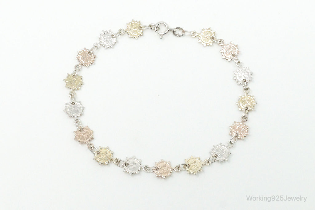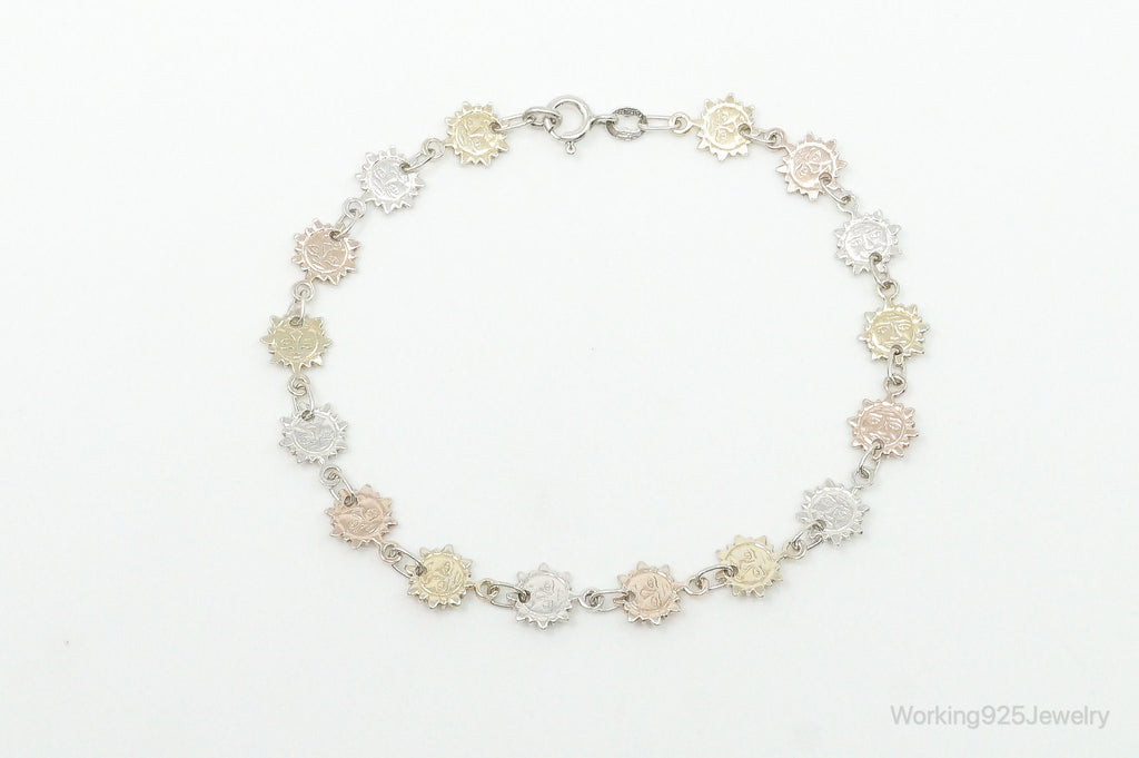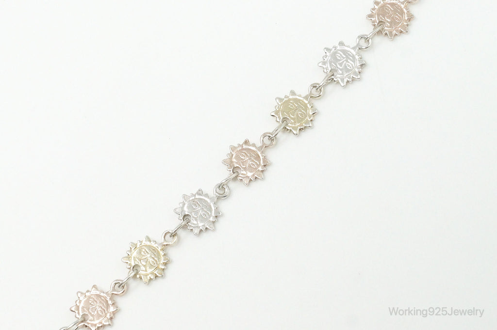 Vintage Designer Sun Face Gold Vermeil Sterling Silver Bracelet