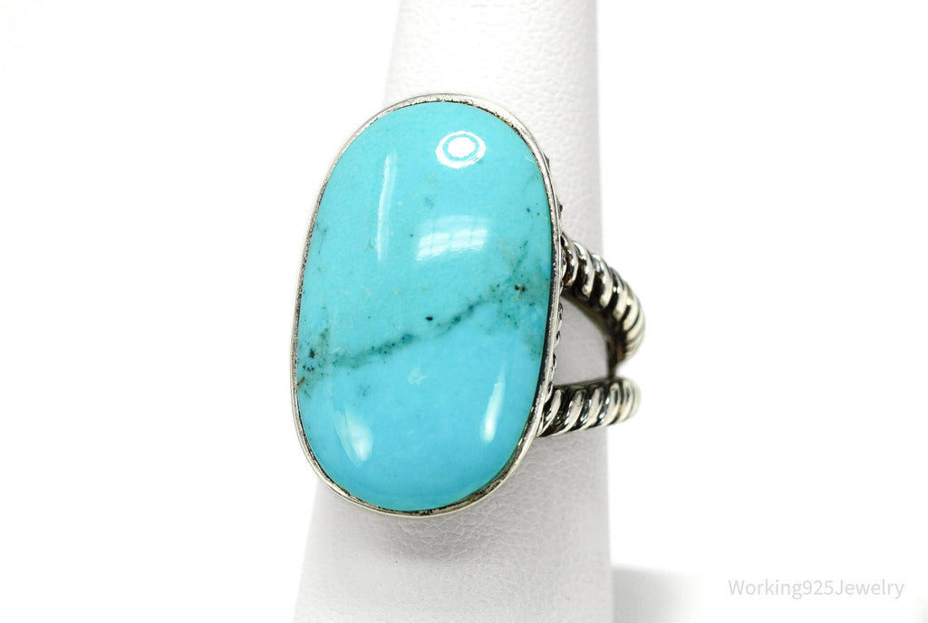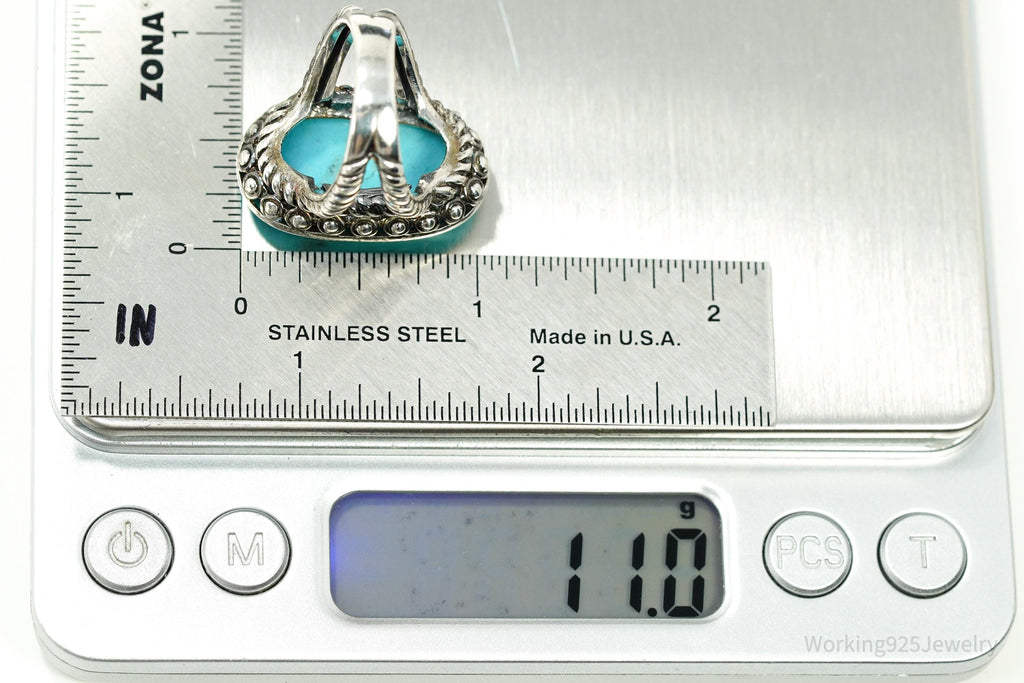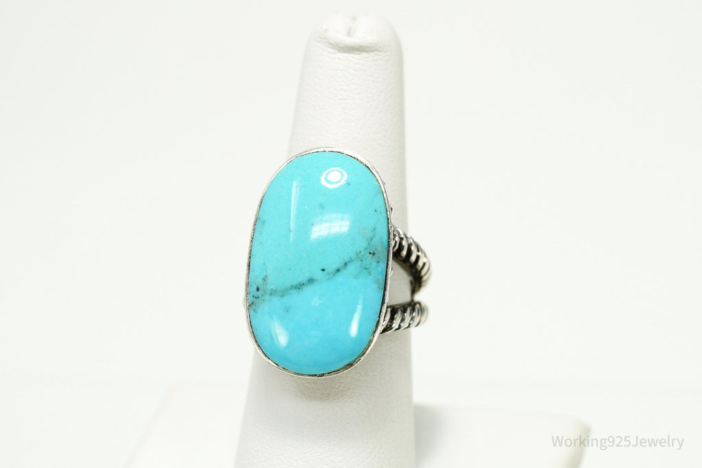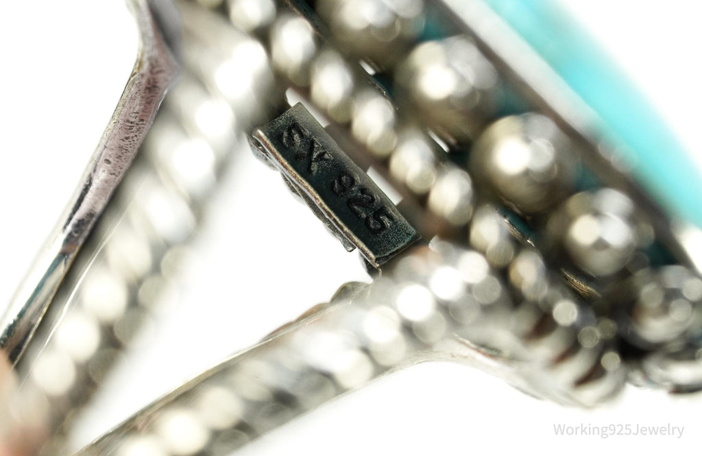 Vintage Designer SX Large Turquoise Sterling Silver Ring - Size 7